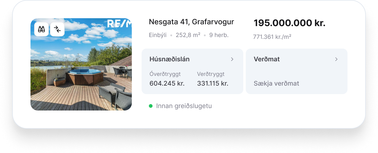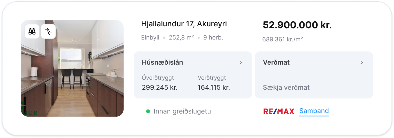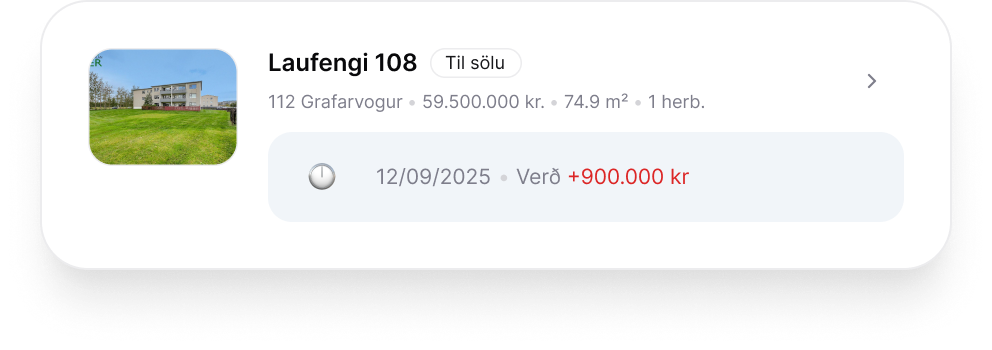 Þú getur gert tilboð í fasteign með einföldum og gagnsæjum hætti í gegnum Eignavaktina. Þetta sparar bæði tíma og fyrirhöfn, og dregur úr núningi í fasteignaviðskiptum. Þó tilboðið sé ekki bindandi á þessu stigi fer það áfram til fasteignasala sem útbýr formlegt tilboð. Þú getur jafnframt hakað við ef þú hefur áhuga á að selja eigin fasteign, svo fasteignasalinn geti tekið það inn í samtalið samhliða kaupferlinu.