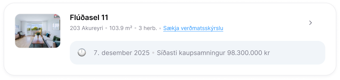 Þegar þú setur eign í vöktun sérð þú alla verðþróun en einnig sérðu alla kaupsamninga. Þannig getur þú fylgst með öllu ferlinu frá skráningu á sölu, verðbreytingum og að lokum kaupverði.