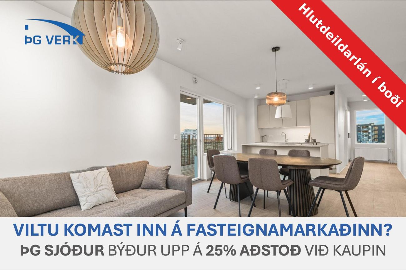 Dzięki Nadzorowi nad nieruchomościami Aurbjörg możesz przeglądać nieruchomości oferujące pożyczki udziałowe (Hlutdeildarlán). Są one dostępne dla osób kupujących po raz pierwszy lub tych, które nie posiadały mieszkania przez ostatnie 5 lat. W przeciwieństwie do zwykłych kredytów, pożyczki udziałowe nie wymagają miesięcznych spłat ani odsetek — spłacasz je po 10 latach lub w momencie sprzedaży mieszkania.