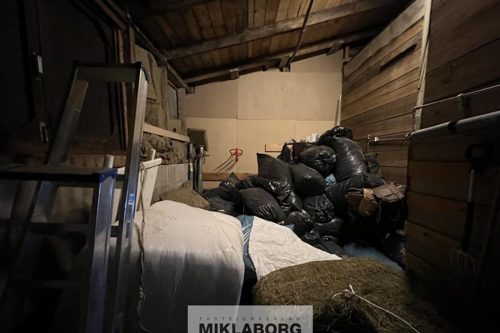 Hlaðan er mjög stór og væri hægt að stækka / fjölga hestplássum þar inn.
