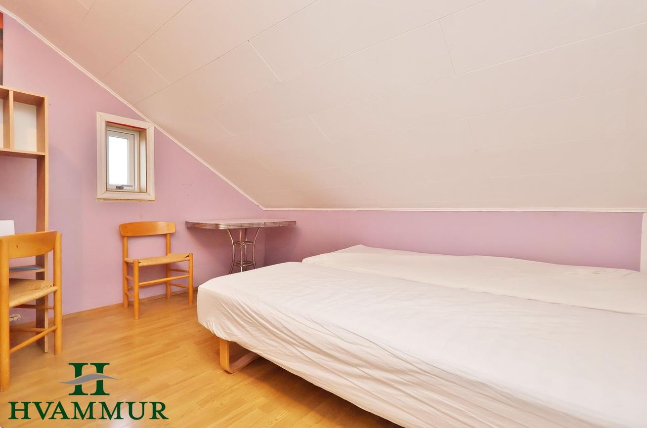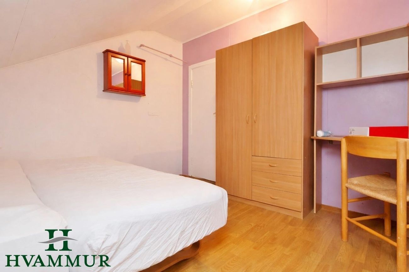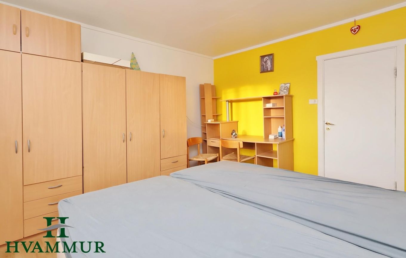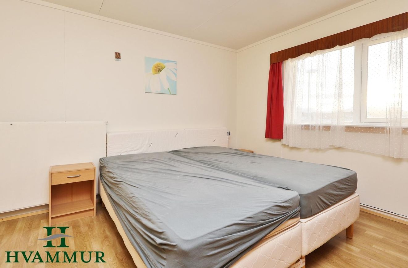 Svefnherbergin eru þrjú, öll með plastparketi á gólfum og lausum fataskápum sem geta fylgt með við sölu.