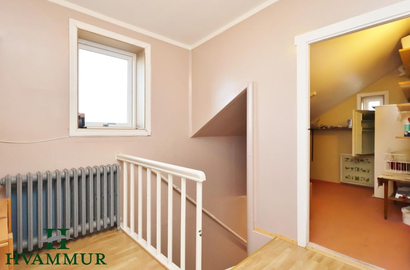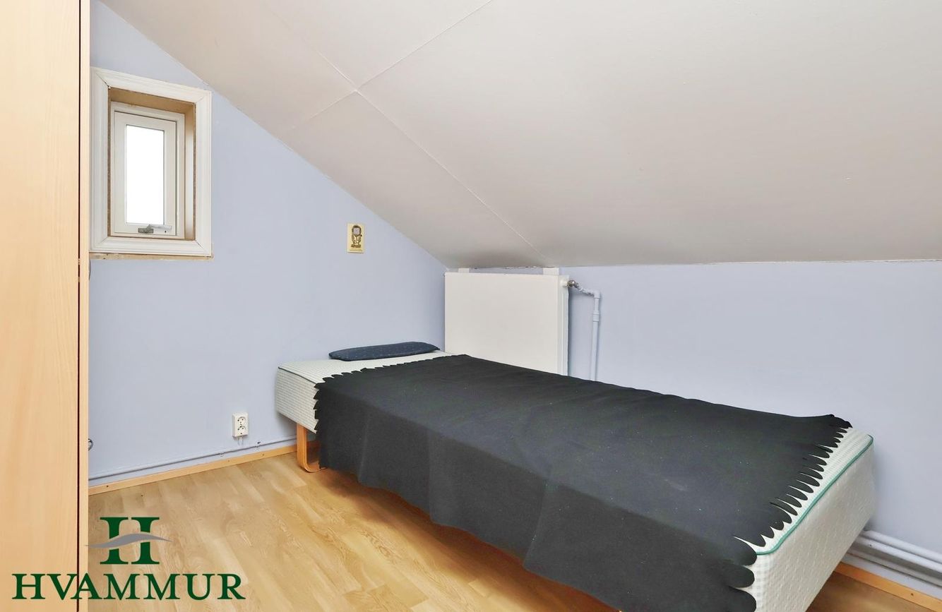 Fasteignasalan Hvammur 466 1600Ægisbraut 6 - Skemmtileg 4ra herbergja risíbúð með sérinngangi við sjávarsíðuna á Blönduósi ásamt bílskúr - Stærð 72,6 m², auk bílskúrs 35,5 m². Nýtanlegir fermetrar innan íbúðar eru fleiri undir súð.Íbúðarhúsið er með skráð byggingarár 1947 og bílskúrinn árið 1957. Íbúðarhúsið er steypt og bílskúr er steyptur og úr timbri og báðir eignarhlutar eru klæddir að utan með bárujárni. Timburgólf er á milli hæða í íbúðarhúsi.