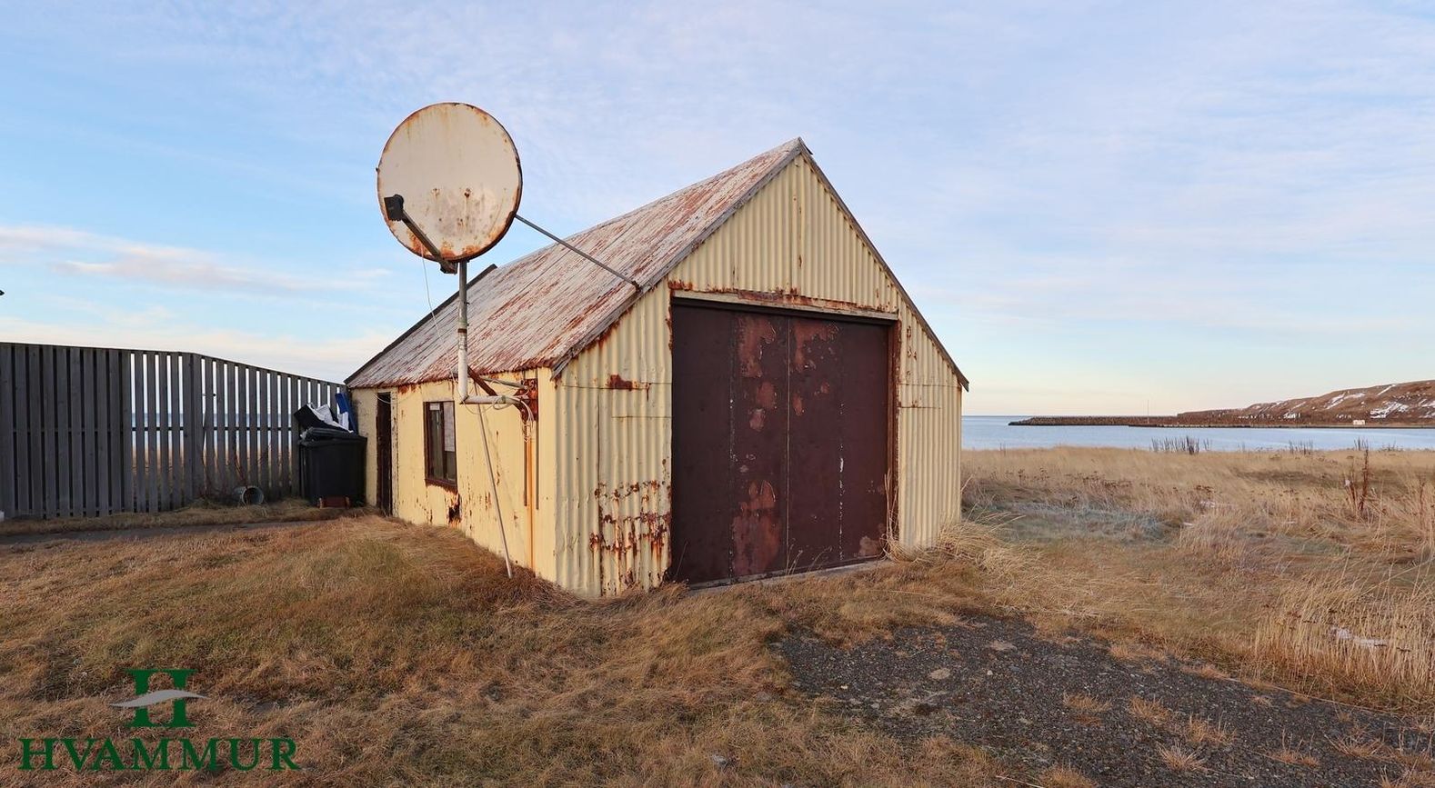 Bílskúr fylgir eigninni, skráður 35,5 m² að stærð, steyptur og úr timbri er klæddur með bárujárni. Bílskúrinn er hrörlegur og þarfnast endurbóta.