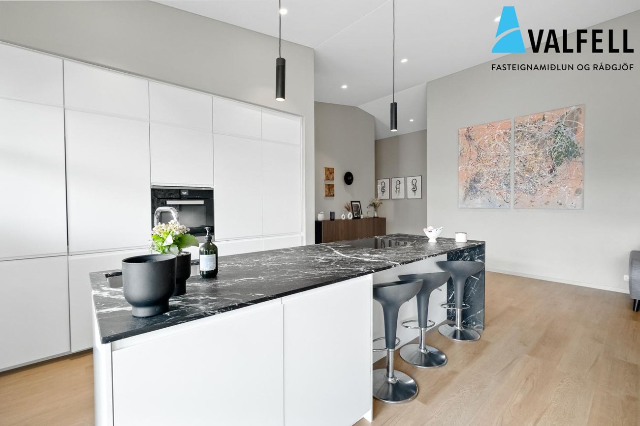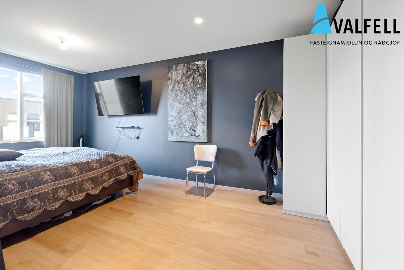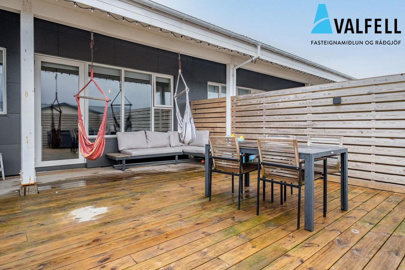 Rúmgott og vel skipulagt milliraðhús á einni hæð. Innan hússins er gert ráð fyrir 4 svefnherbergjum ( eru 3 í dag og TV herbergi hægt að breyta aftur ) tvö baðherbergi. Stór suðursólpallur með skjólgirðingu og heitum potti ( rafmagn ) hleðslustöð við innkeyrslu. Innkeyrsla steypt sumarið 2025.Allar nánari uppl. veitir Hákon á hakon@valfell.is