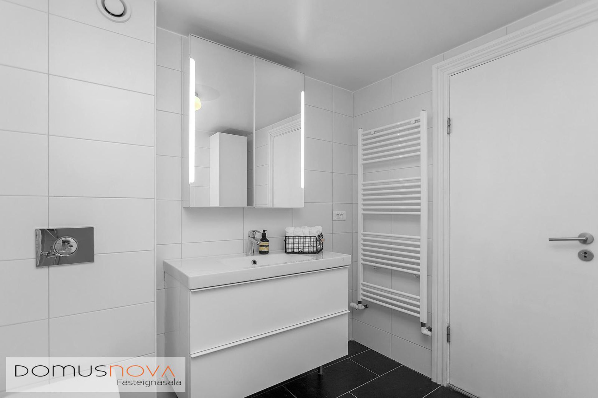 Glæsileg neðri hæð á frábærum stað með garði, garðhýsi, timburverönd með skjólgirðingu og sérbílastæði. Eignin er með 4 herbergjum, borðstofu, sjónvarpsholi, stofu og stóru eldhúsi í einu rými. Útgengt á timburverönd sem nýtur sólar frá hádegi fram á kvöld. Örstutt í þjónstu í Mjódd og Smáralind og leiðir útúr borginni eru í seilingarfjarlægð. Stutt að fara í skóla og leikskóla auk þess sem útivistarsvæði eru skammt frá s.s. skíðasvæði í Vatnsendahæð, Elliðavatn, Elliðaárdalur, íþróttasvæði Leiknis og ÍR og fleira mætti nefna. Eignin er með nýlegum innréttingum á baðherbergjum og lítur vel út. Sjón er sögu ríkari. Fasteignamat næsta árs er kr. 68.850.000.Nánari lýsing:Setustofa með parket á gólfi.Eldhús er með HTH innréttingu og er útgengt á verönd úr eldhúsinu.Borðstofa er ágætlega stór og auðvelt að breyta henni í svefnherbergi.Hjónaherbergi er með kork á gólfi.3 svefnherbergi eru öll með parket á gólfi, eitt þeirra er notað sem fataherbergi (merkt sem geymsla á teikningu).Sjónvarpshol er með parket á gólfi.2 baðherbergi eru í eigninni og er annað með tengi fyrir þvottavél og þurrkara, bæði flísalögð.Forstofa með fatahengi við inngang.Stór geymsla innaf herbergjagangi, lág lofthæð.Íbúðin er skráð 156,2fm, skv. Þjóðskrá og salarhæð í íbúðinni er skráð 2,45m þannig að heldur lægra er til lofts en algengt er. Tvö fastanúmer eru í húsinu.Góður pallur með skjólgirðingu er vestan og norðan hússins, markísa yfir palli að hluta. garðurinn er sameiginlegur og góður geymsluskúr tilheyrir eigninni.Til að fá söluyfirlit strax smellið hérNánari upplýsingar veita:Árni Helgason löggiltur fasteignasali / s.663 4290 / Skrifstofa / s.527-1717 / Um skoðunar- og aðgæsluskyldu:Í lögum um fasteignakaup nr. 40/2002 er kveðið á um ríka skoðunarskyldu kaupenda á fasteignum. DOMUSNOVA fasteignasala bendir væntanlegum kaupendum á að kynna sér vel ástand fasteigna við skoðun og fyrir tilboðsgerð og ef þurfa þykir að leita til sérfræðinga um nánari ástandsskoðun.Forsendur söluyfirlits:Söluyfirlit er samið af fasteignasala í samræmi við ákvæði laga nr. 70/2015. Þær upplýsingar sem fram koma í söluyfirliti þessu eru sóttar í opinberar skrár, til seljanda sjálfs og eftir atvikum til húsfélags. Seljandi veitir upplýsingar um eign í samræmi við upplýsingaskyldu laga um fasteignakaup nr. 40/2002. Fasteignasali sannreynir að þær upplýsingar séu réttar með sjónskoðun á eigninni. Fasteignasali getur ekki fullyrt um ástand og eiginleika þeirra hluta fasteigna sem ekki eru aðgengilegir og sjást ekki berum augum, t.d. lagnir, dren, skólp og þak.Gjöld sem kaupandi þarf að standa straum af vegna kaupanna:Stimpilgjald af kaupsamningi sem er hlutfall af fasteignamati. Stimpilgjald er 0,8% fyrir einstaklinga (0,4% við fyrstu kaup m.v. að lágmarki 50% eignarhlut) og 1,6% fyrir lögaðila.Þinglýsingargjald af kaupsamningi, veðskuldabréfum, veðleyfum o.fl. Þinglýsingargjald er kr. 2.500,- fyrir hvert skjal.Lántökugjald lánastofnunar. Um lántökugjald vísast í gjaldskrá viðkomandi lánveitanda.Umsýsluþóknun fasteignasölu skv. gjaldskrá.Ef um nýbyggingu er að ræða greiðir kaupandi skipulagsgjald, 0,3% af brunabótamáti, þegar það er lagt á.