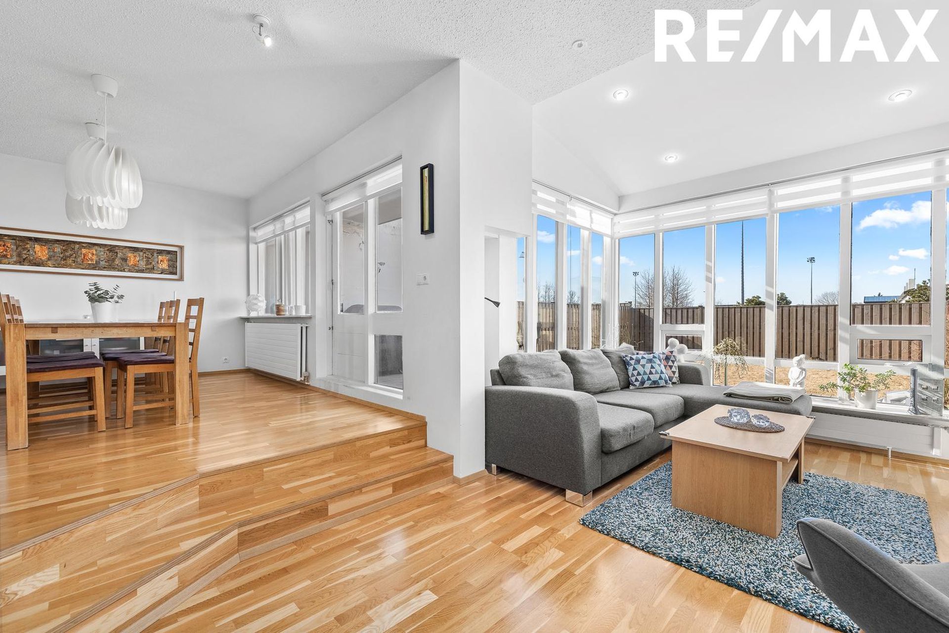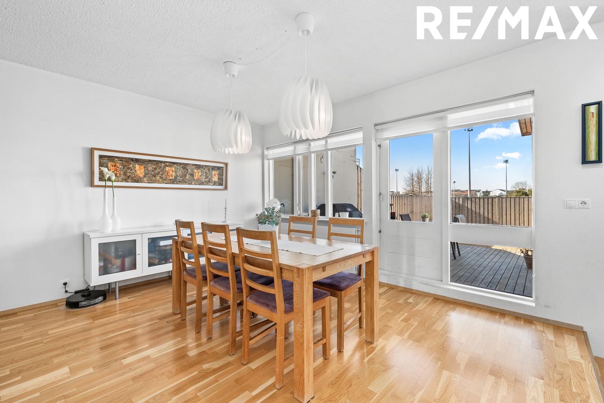 Guðbjörg Helga lgf og Gylfi Jens lgf. ásamt RE/MAX kynna Álagranda 18, 107 Reykjavík:Bjart, rúmgott og vel skipulagt mikið endurnýjað raðhús með innbyggðum, innangengum bílskúr og garði með verönd á eftirsóttum stað í Vesturbæ Reykjavíkur. Heildarstærð eignar er 187,6 fm og er húsið á tveimur hæðum auk rislofts utan fermetratölu. Gott fjölskylduhús með endurnýjaðri þakklæðningu, endurnýjuðum baðherbergjum og eldhúsi. Skipulagi hefur verið breytt frá samþykktum teikningum með því að opna alrýmið meira við eldhús. Tvö einkastæði eru við hús og tilbúin tenging fyrir rafhleðslustöð. Húsið getur verið laust fljótlega eftir kaupsaming til afhendingar. **SÆKTU SÖLUYFIRLIT MILLILIÐALAUST HÉR** **SKOÐAU EIGNINA BETUR Í ÞRÍVÍDD (3-D) MEÐ ÞVÍ AÐ SMELLA HÉR** Núverandi skipulag:Jarðhæð: Forstofa, hol, bílskúr, eldhús með borðaðstöðu, borðstofa, stofa, gestasalerni og þar er geymslurými undir stiga. Efri hæð: Fjögur svefnherbergi, baðherbergi, þvottahús, vinnuaðstaða og gangur. Ris: Manngengt geymsluris er yfir öllu húsinu, tröppur eru í þvottahúsi.Nánari lýsing; Neðri hæð:Gólfefni eru parket á holi og stofum, flísar í eldhúsi, gestasalerni og forstofu. Sólbekkir eru úr steini í öllu húsinu. Forstofa: Fataskápur fyrir yfirhafnir.Hol: Tengir saman forstofu, stofur, stiga milli hæða, eldhús og inngengi í bílskúr með geymslu innaf. Steyptur teppalagður stigi er milli hæða. Eldhús: Hvít innrétting með góðu skápaplássi, flísar á gólfi og á milli innréttinga. Viðarborðplötur og mjög gott vinnupláss, stálvaskur, span helluborð, bakaraofn í vinnuhæð, innbyggð uppþvottavél, veggháfur, opnanlegur gluggi , sólargluggatjöld, hiti í gólfi. Rúmgott pláss fyrir eldhúsborð. Rýmið hefur verið opnað talsvert mikið, eldhús var alveg aflokað á upprunalegri teikningu. Stæði fyrir tvöfaldan amerískan ísskáp.Borðstofa: Útgengi á viðarverönd og garð með grasi sem snýr í suðvestur. Gluggar. Hvítar zebra rúllugardínur.Setustofa: Gengið er niður tvö þrep í rúmgóða og bjarta setustofu. Hvítar zebra rúllugardínur. Möguleiki er að setja upp arin í stofu.Gestasalerni: Gengið niður örfá þrep að endurnýjuðu gestasalerni. Flísar á gólfi á snyrtingunni og á salerniskassa, upphengt salerni, dökk viðarinnrétting undir handlaug. Efri hæð: Aukin lofthæð, hvítmáluð viðarklæðning í loftum. Parket á herbergjum, gangi og vinnurými og flísar á votrýmum. Gangur: Herbergjagangur sem tengir saman öll rýmin, Opið rými: Nýtt sem skrifborðs- og vinnuaðstaða í dag. Herbergi 1: Mjög rúmgott herbergi með aukinni lofthæð. Herbergið snýr að garði, útgengi á svalir með lágu handriði sem snúa í suðvestur. Fataskápur getur fylgt. Myrkrarúllutjöld. Herbergi 2: Rúmgott herbergi með aukinni lofthæð. Herbergi 3: Rúmgott herbergi. Gluggar stækkaðir með því að bæta við glerjum en upprunalega voru viðarplötur í hluta gluggasvæðis. Herbergi 4: Ágætlega rúmgott herbergi með aukinni lofthæð sem var útbúið af núverandi eigendum. Snýr inn í garð. Myrkrarúllugardínur.Baðherbergi: Tvöföld eikarinnrétting og tvöföld handlaug í einni einingu ofan á. Spegill og veggskápur. Tvöfaldur hár eikarskápur á vegg móts við handlaugar. Baðkar, frístandandi sturtuklefi, hvítur handklæðaofn, upphengt salerni, opnanlegur gluggi, gólfhiti. Þvottahús: Físalagt gólf tengi fyrir þvottavél og þurrkara. Stálvaskur. Sturtuklefi sem þarf að uppfæra eða fjarlægja í horninu sem eigandi hefur aldrei notað, var uppsett af fyrri eiganda. viðarstigi upp á háaloft. Ris: Geymsluloft sem er innangengt (viðartröppur) eru yfir miðju húsinu endilöngu. Manngengt og rúmgott rými sem getur nýst á ýmsa vegu. Rýmið er utan fermetratölu vegna lofthæðar. Bílskúr: Innangengt er í hann úr holi. Innst í bílskúr er lokanleg geymsla með hurð. Rafdrifin bílskúrshurð með nýlegum mótor. Hitaveita, rafmagn og vatnstengi. Lóð: Viðarverönd og garður með grasi. Garðurinn er alveg afgirtur með viðargirðingu, opnanlegt hlið er í enda hennar. Framan við húsið eru runnar mili húsa, tvöfalt bílastæði og tengi fyrir rafhleðslustöð klárt. Framkvæmdasaga núverandi eigenda:2021: Tengi fyrir rafhleðslustöð sett upp á hliðarvegg bílskúrs. 2018: Þakið endurnýjað bæði viður og sett aluzink bárujárn rauðlitað, undirlag endurnýjað jafnframt. Þakkantur jafnframt endurnýjaður.2018: Herbergi 4 búið til, en var áður opið rými með skrifstofuhorni.2015: Gestasalerni jarðhæð endurnýjað2013: Baðherbergi efri hæð endurnýjað2013: Eldhús endurnýjað2013: Parket endurnýjað á öllu húsinu og teppi á stiga.2013: Veggir milli hols og borðstofu fjarlægðir við eldhús - opnað meira. Settur hálfur veggur við þrep í stofu.2013: Gluggi í herbergi 3 stækkaður, gler sett þar sem viðarplötur voru.Samantekið þá er hér um að ræða afar vel skipulagt, bjart og myndarlegt raðhús á rólegum og vinsælum stað í Vesturbænum, með íþróttasvæði KR liggur við í bakgarðinum og í göngufjarlægð, grunnskóla, leikskóla og verslanir og þjónustu.d Núverandi hleðslustöð er undanskilin fylgifé fasteignar og verður fjarlægð á kostnað seljenda. Snjóbræðsla er framan við bílskúr. Ring kerfi er í húsinu og stendur kaupanda til boða að kaupa það .Allar nánari upplýsingar og bókun skoðunar er hjáGuðbjörg Helga löggiltur fasteignasali og viðskiptafræðingur: , sími 897 7712 Gylfi Jens löggiltur fasteignasali og lögmaður: , sími 822 5124.