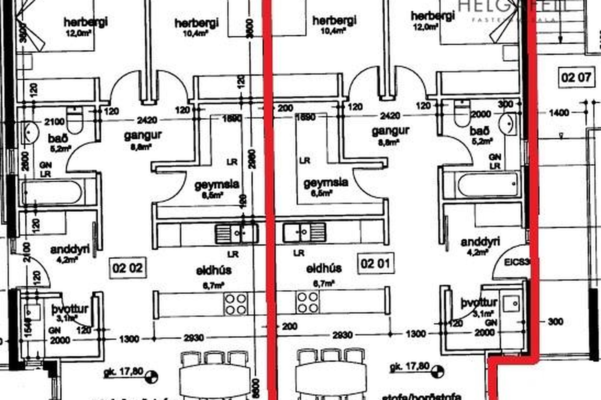 | 3 | 102,80 m² | 64.900.000 kr. 19. mars 2026 | 14.500.000 kr. 21. september 2015 |