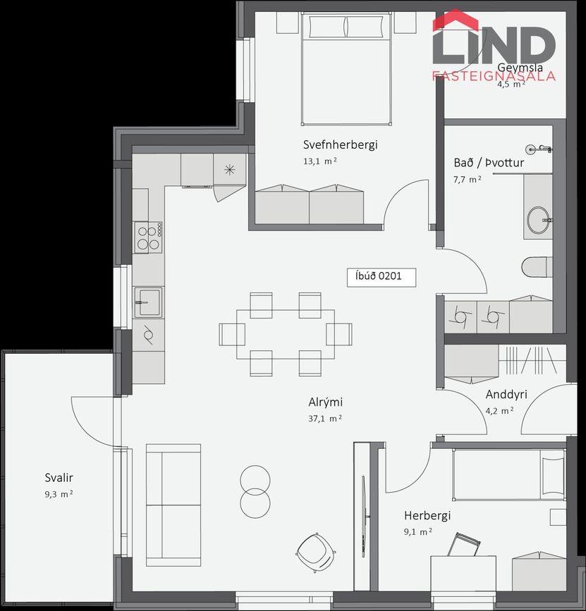 | 3 | 89,30 m² | 85.900.000 kr. 21. apríl 2026 | 61.400.000 kr. 11. mars 2021 |