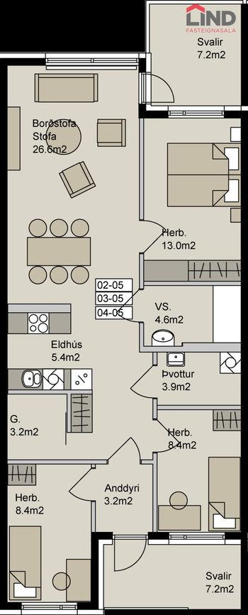 | 4 | 104,90 m² | 87.900.000 kr. 4. maí 2025 | 85.700.000 kr. 8. ágúst 2025 |