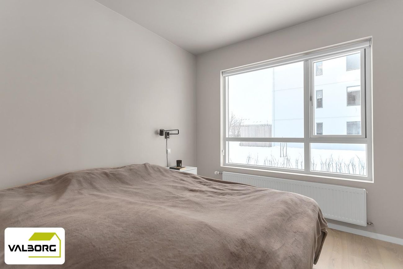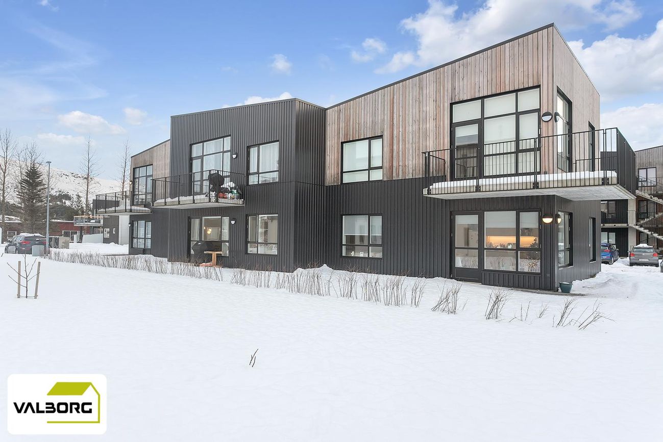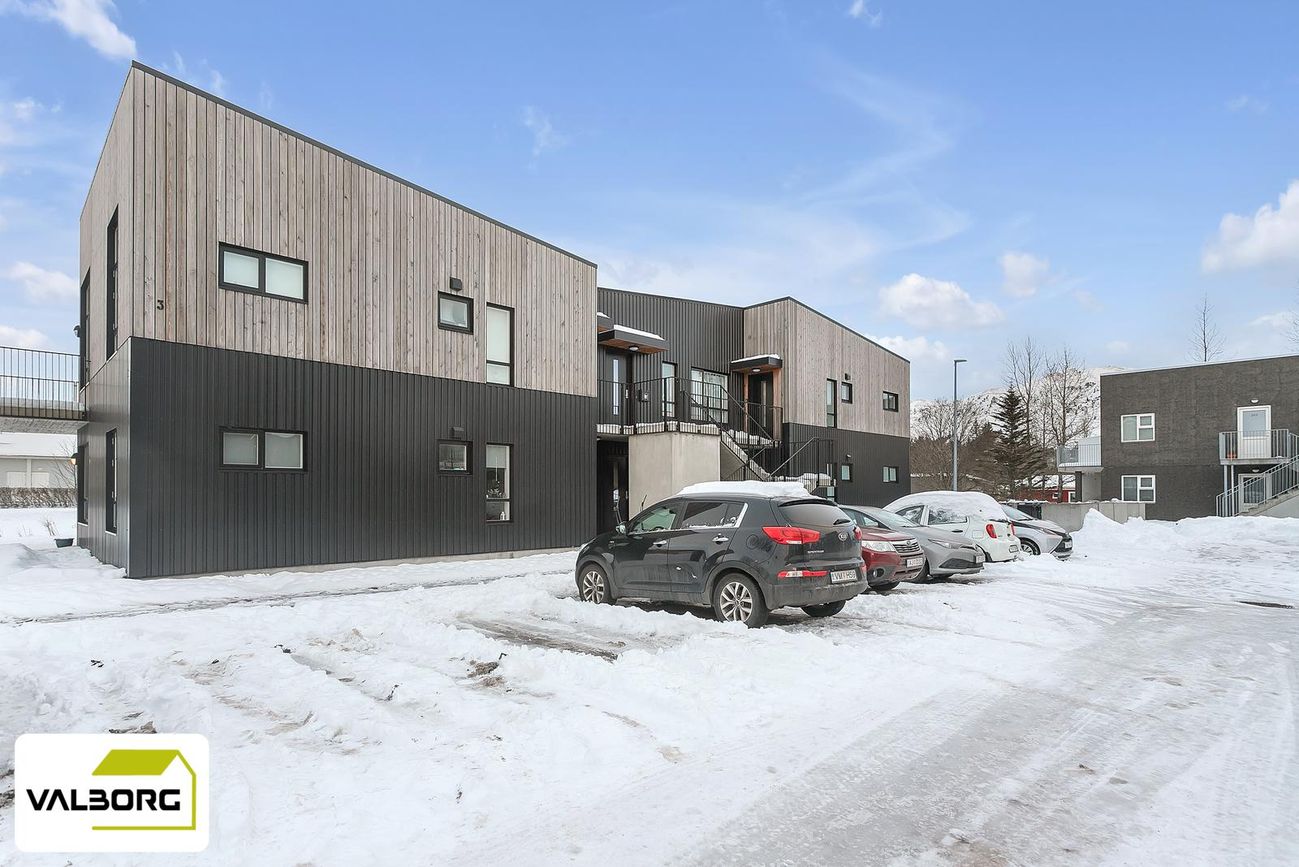 Íbúðin er nýleg, þriggja herbergja, á fyrstu hæð með sérinngangi.