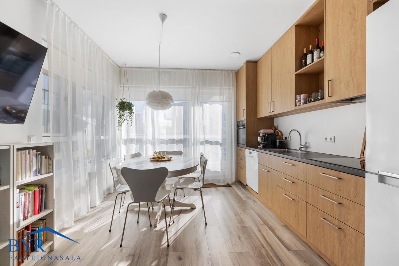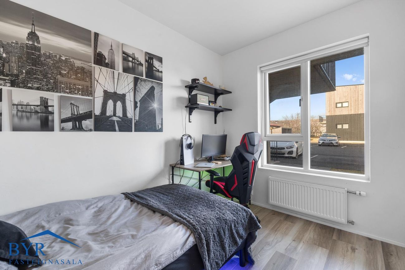 BYR fasteignasala kynnir í einkasölu ALDINMÖRK 8 ÍBÚÐ 103, 810 Hveragerði. Fjögurra herbergja íbúð á jarðhæð í fjölbýlishúsi í Edenbyggð Hveragerði. Stutt í alla almenna þjónustu s.s. skóla og leikskóla. Smellið hér fyrir staðsetningu. ALDINMÖRK 8 ÍBÚÐ 103, fyrsta hæð til vinstri. Íbúð 76,4 m² og geymsla 3,5 m² samtals 79,9 m² samkvæmt skráningu HMS.Skipulag íbúðar: Anddyri, alrými með stofu, borðstofu og eldhúsi, þrjú svefnherbergi og baðherbergi. Í sameign er sér geymsla og vagna- og hjólageymsla. Nánari lýsing: Anddyri með fataskáp.Alrými með stofu, borðstofu og eldhúsi, útgengt er úr alrými út á hellulagða verönd. Eldhús, sérsmíðuð innrétting, AEG sjálfhreinsandi blástursofn í vinnuhæð, spanhelluborð og þunn útdraganleg vifta sem fellur upp undir efri skáp. Stálvaskur og Grohe blöndunartæki eru í eldhúsinu og innbyggð LED lýsing undir efri skápum.Hjónaherbergi er með fataskápum yfir heilan vegg. Barnaherbergin eru tvö bæði með tvöföldum fataskáp. Baðherbergi, flisar á gólfi og á veggjum í sturtu, upphengt salerni, vaskinnrétting, speglaskápur, Grohe blöndunartæki. Þvottaaðstaða er á baðherbergi, sérmíðaður skápur fyrir þvottavél og þurrkara.Gólfefni: Harðparket er á alrými og svefnherbergjum. og í stofu. Flísar á anddyri og baðherbergi.Sér geymsla er í sameign í kjallara. Í sameign í kjallara er vagna- og hjólageymsla og inntaksrými. Lyftan fer niður í kjallara. Nánar um húsið, T.ark arkitektar eru aðalhönnuðir hússins. Aldinmörk 8 er þriggja hæða fjölbýli, í húsinu eru 9 íbúðir, þjár á hverri hæð. Húsið er staðsteypt og klætt að utan með málm - og timburklæðningu. Lyfta er í húsinu sem tengir kjallara og hæðirnar þjár. Sér inngangur er íbúðina. Sameiginleg lóð er frágengin, sorptunnuskýli. Miðlægt torg er á milli húsanna á svæðinu þar sem eru fjögur lítil gróðurhús sem íbúar svæðisins geta leigt af sveitarfélaginu til eigin nota. Lóð er sameiginleg 654,1 m² leigulóð. Bílastæði eru í sameign. Húsfélag er starfrækt í eigninni. Skráning eignar samkvæmt fasteignayfirliti HMS:Fasteignanúmer 250-6255.Stærð: Íbúð 76,4 m². Geymsla 3,5 m² Samtals 79,9 m².Brunabótamat: 47.250.000 kr.Fasteignamat: 52.350.000 kr.Byggingarár 2019.Byggingarefni: Steypa.ALLAR NÁNARI UPPLÝSINGAR Á SKRIFSTOFU s. 483 5800 - Elín Káradóttir, löggiltur fasteignasali og eigandi – Hrönn Bjargar Harðardóttir, löggiltur fasteignasali / stílisti - Sigurbjörg Halla Sigurjónsdóttir, löggiltur fasteignasali - Opið alla virka daga milli kl. 09:00-16:00.Um skoðunarskyldu:Lög um fasteignakaup nr. 40/2002 er kveða á um ríka skoðunarskyldu kaupenda á fasteignum. Byr fasteignasala skorar því á væntanlega kaupendur að kynna sér vel ástand fasteigna fyrir kauptilboðsgerð og leita til þar til bærra sérfræðinga um nánari skoðun. Gjöld sem kaupandi þarf að greiða af vegna kaupanna:1. Stimpilgjald af kaupsamningi - 0.8% af heildarfasteignamati fyrir einstaklinga / 1.6% fyrir lögaðila2. Þinglýsingargjald af kaupsamningi, veðskuldabréfi, o.fl. - kr. 2.700 af hverju skjali.3. Lántökugjald lánastofnunar – sjá gjaldskrá viðkomandi lánveitanda.4. Umsýslugjald til fasteignasölu kr. 69.900 m.vsk.5. Ef um nýbyggingu er að ræða greiðir kaupandi skipulagsgjald, 0,3% af brunabótamáti, þegar það er lagt á.www.byrfasteign.is | Austurmörk 7, 810 Hveragerði - Miðvangur 2-4, 700 Egilsstaðir | Byr fasteignasala