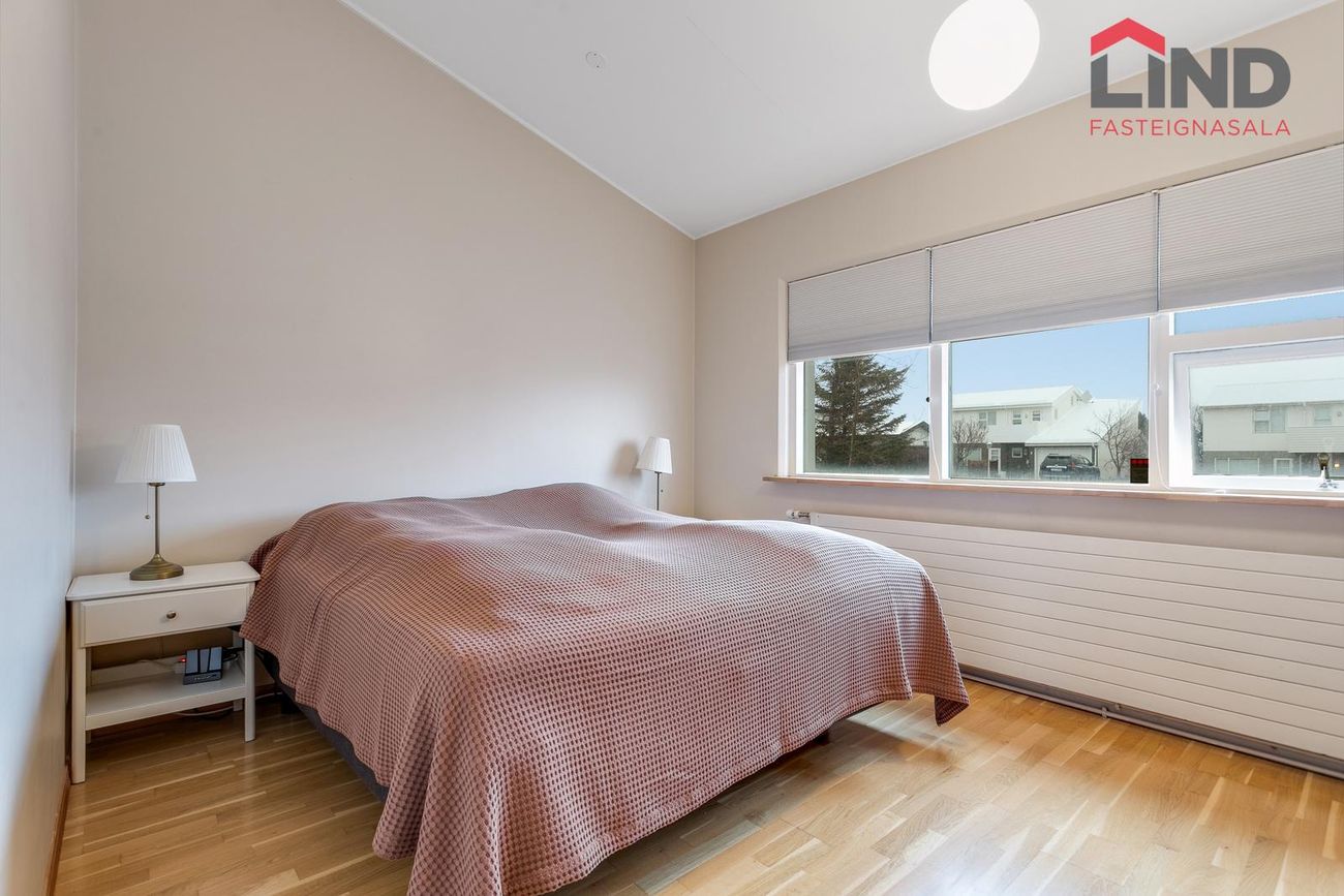 · Hjónaherbergi: Með skápum og parketi. Gluggar til norðurs.