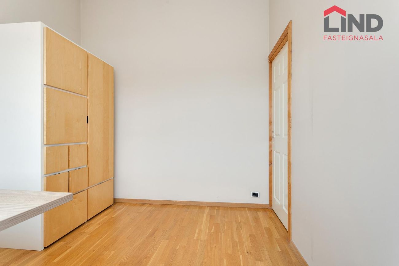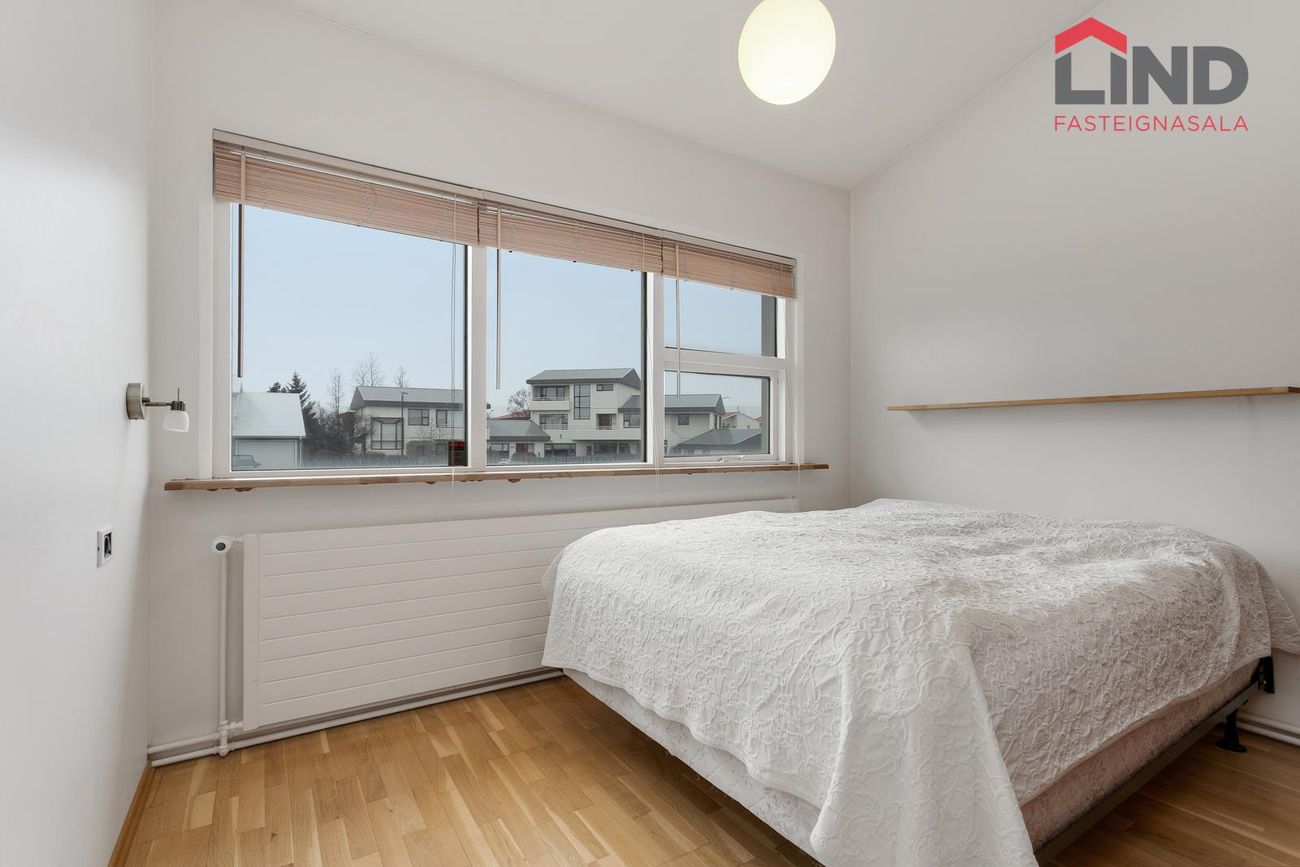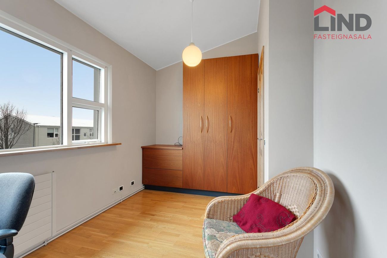 · Svefnherbergi II: Með parketi og skápum. Gluggi til norðurs.