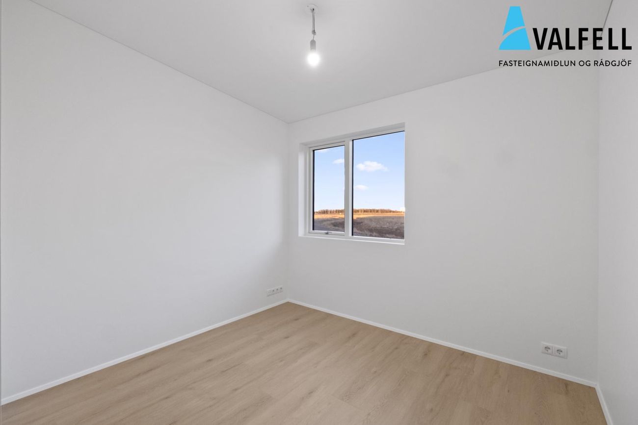 Innan hvers húss eru þrjú rúmgóð svefnherbergi, eitt herbergi með fataskápum, og fataherbergi með fatskápum og baðherbergi inn af hjónaherbergi. Aðalbaðherbergið er inn af gangi, bæði baðherbergi flísalögð að hluta, bæði með blöndunartækjum, öryggisgleri og innréttingu. Gólfhiti í öllum rýmum.