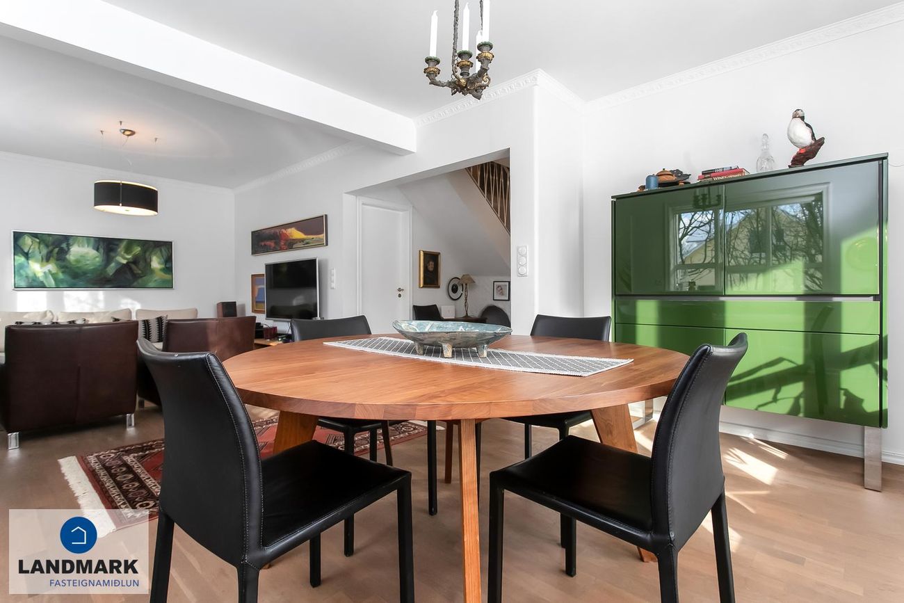efri hæðina. Parketlagður