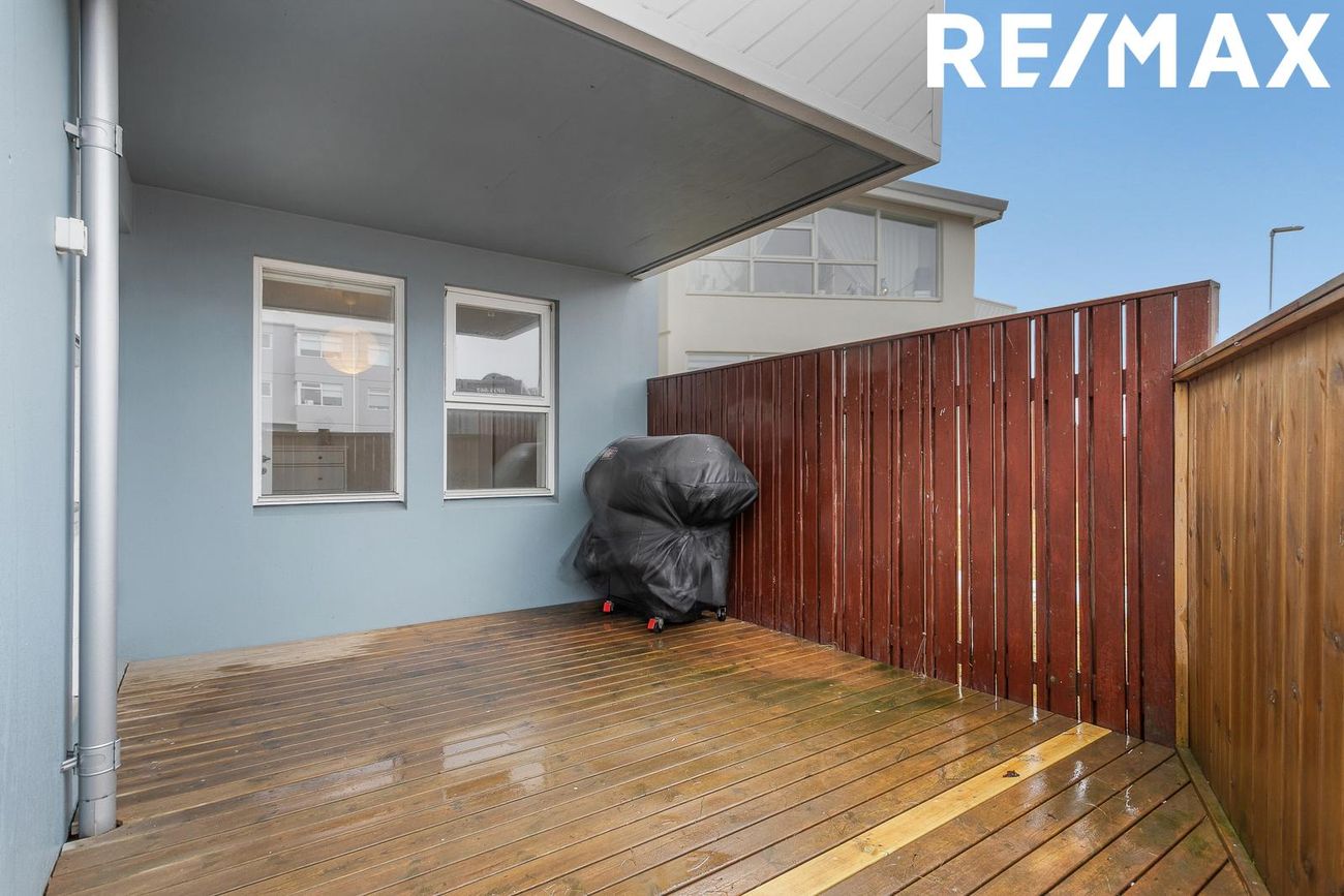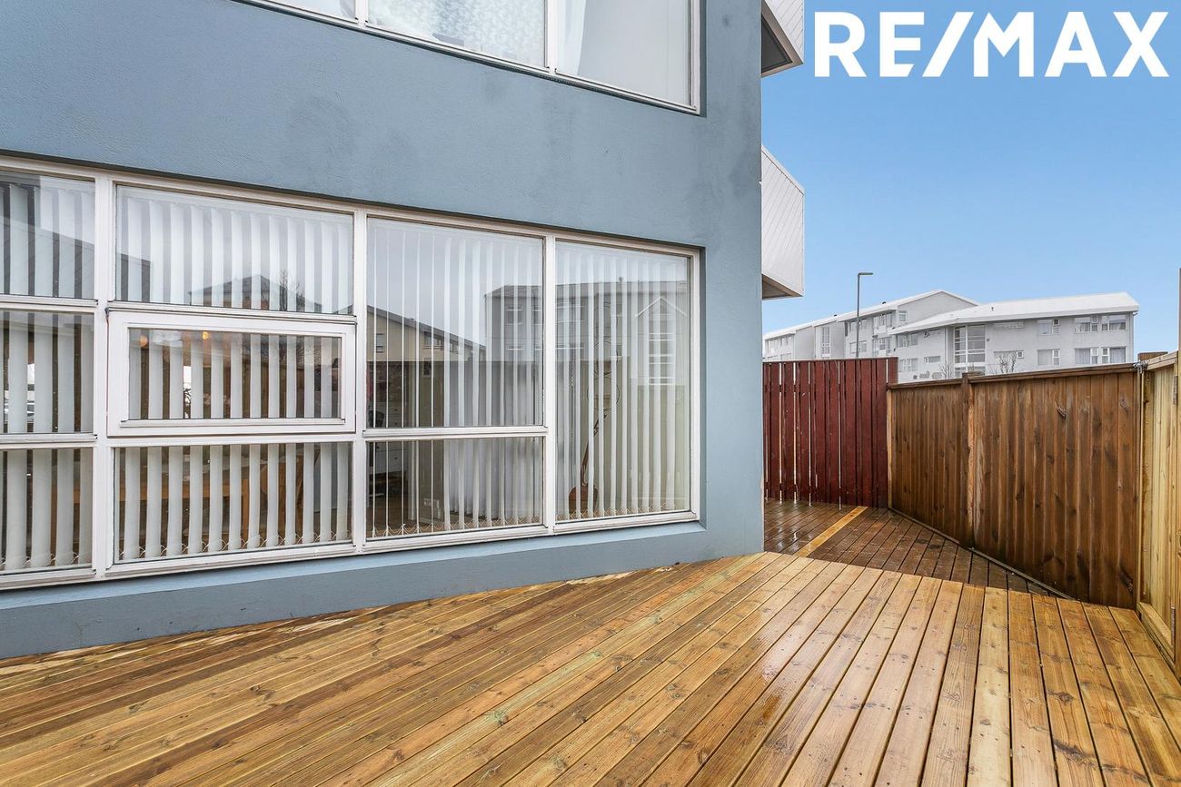 Íbúðin er samtals 105,1 fm, er með fjórum svefnherbergjum og með útgengi úr stofu út á rúmgóðum viðarpalli sem snýr til suðurs. Sameign er snyrtileg og þar er sameiginleg hjólageymsla. Eignin er falleg, lóðin er vel um gengin og snyrtileg.