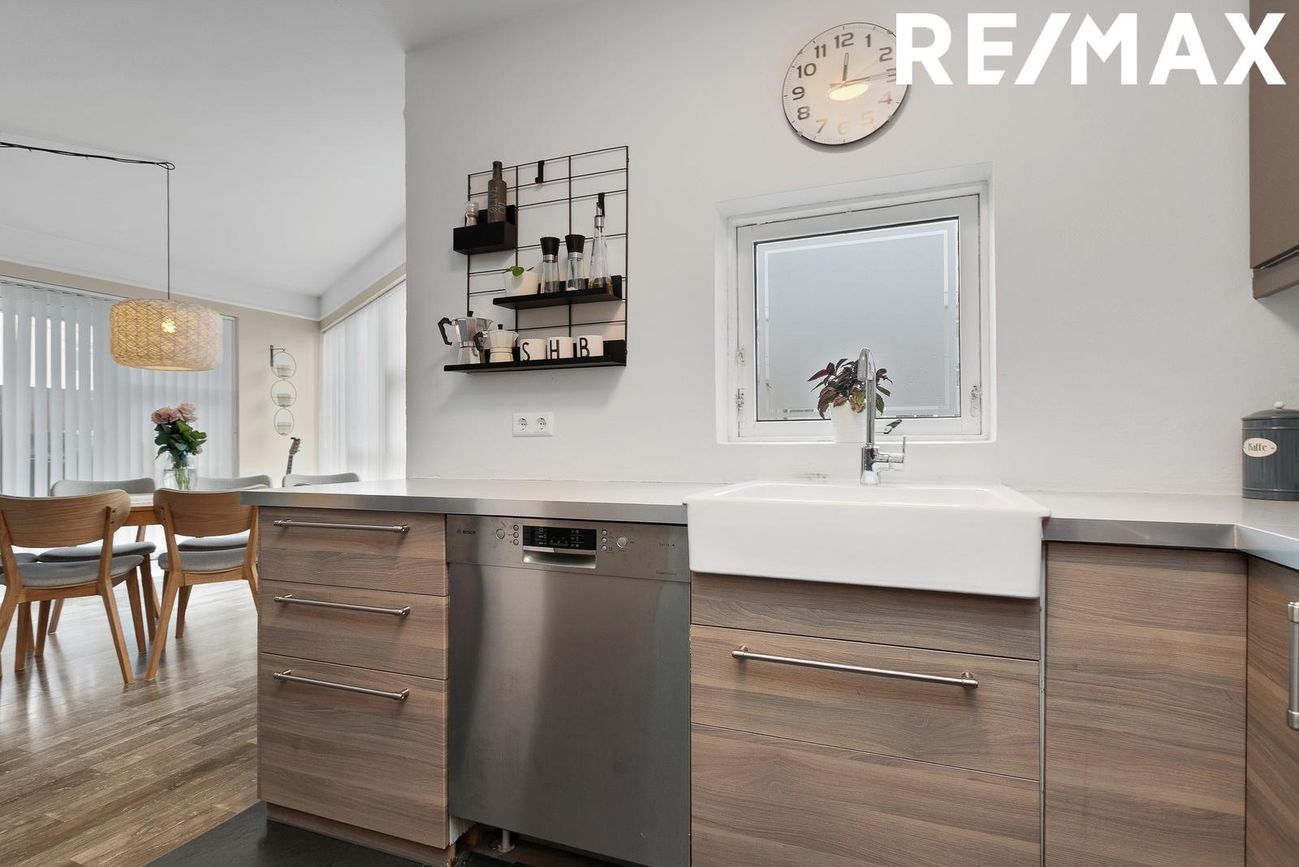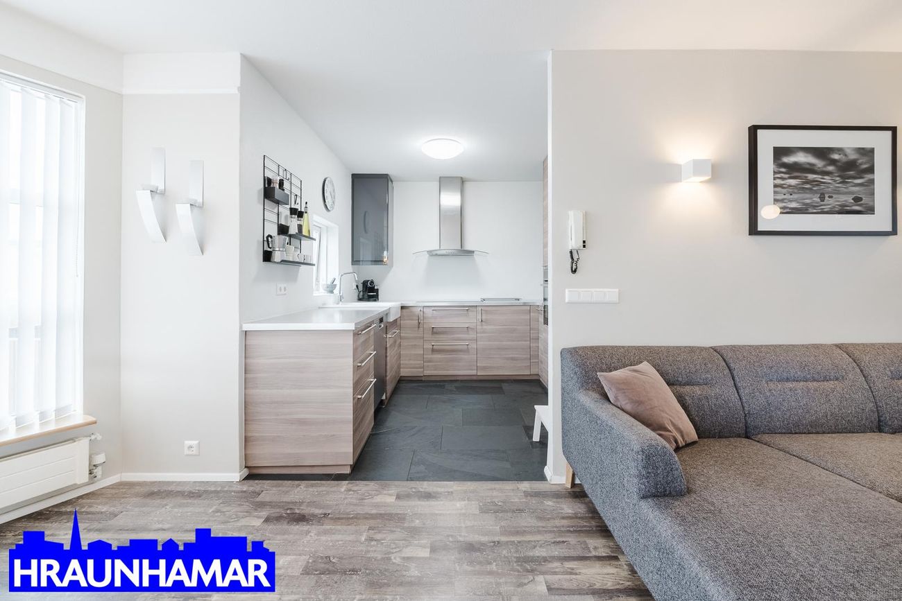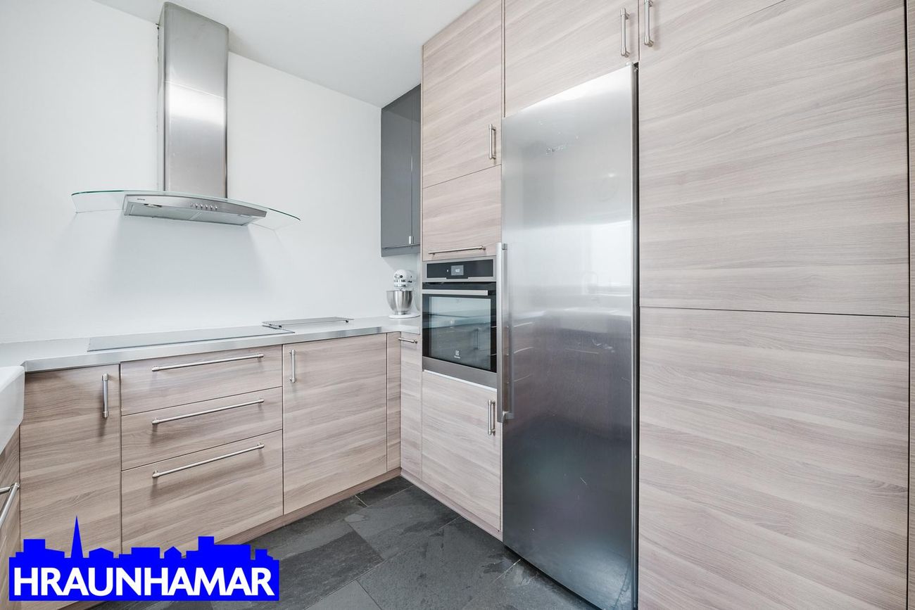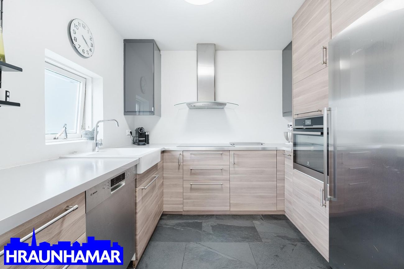 Eldhús er fallegt og opið, með góðu vinnu- og skápaplássi, innrétting og tæki voru endurnýjuð fyrir nokkrum árum.