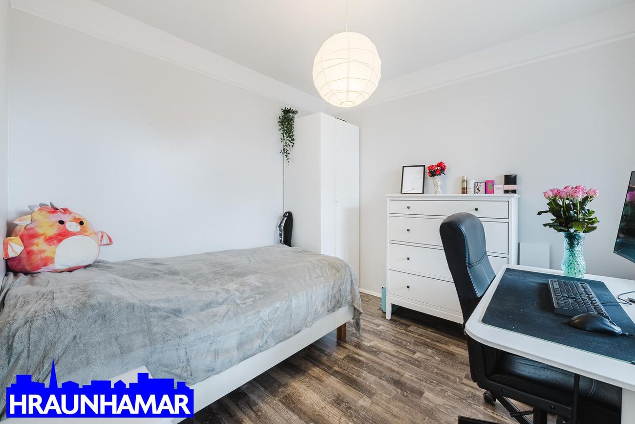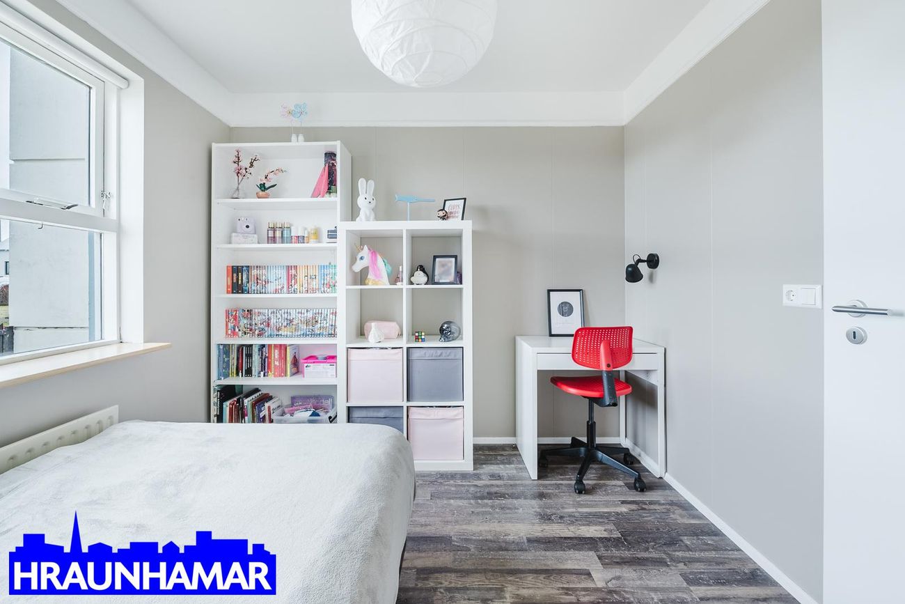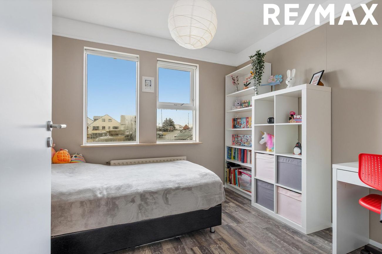 Barnaherbergin eru þrjú öll rúmgóð og björt, með parketi á gólfi og skápum.