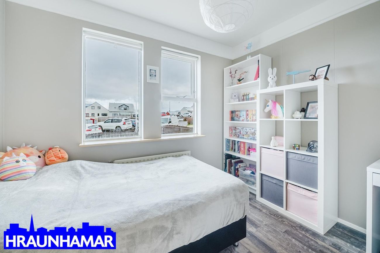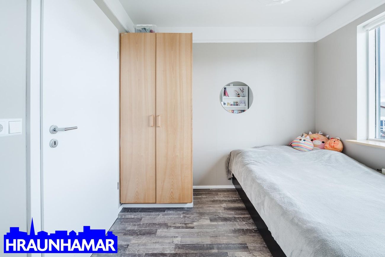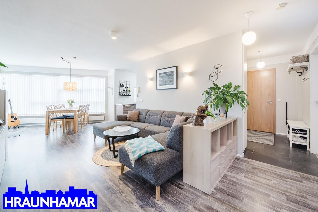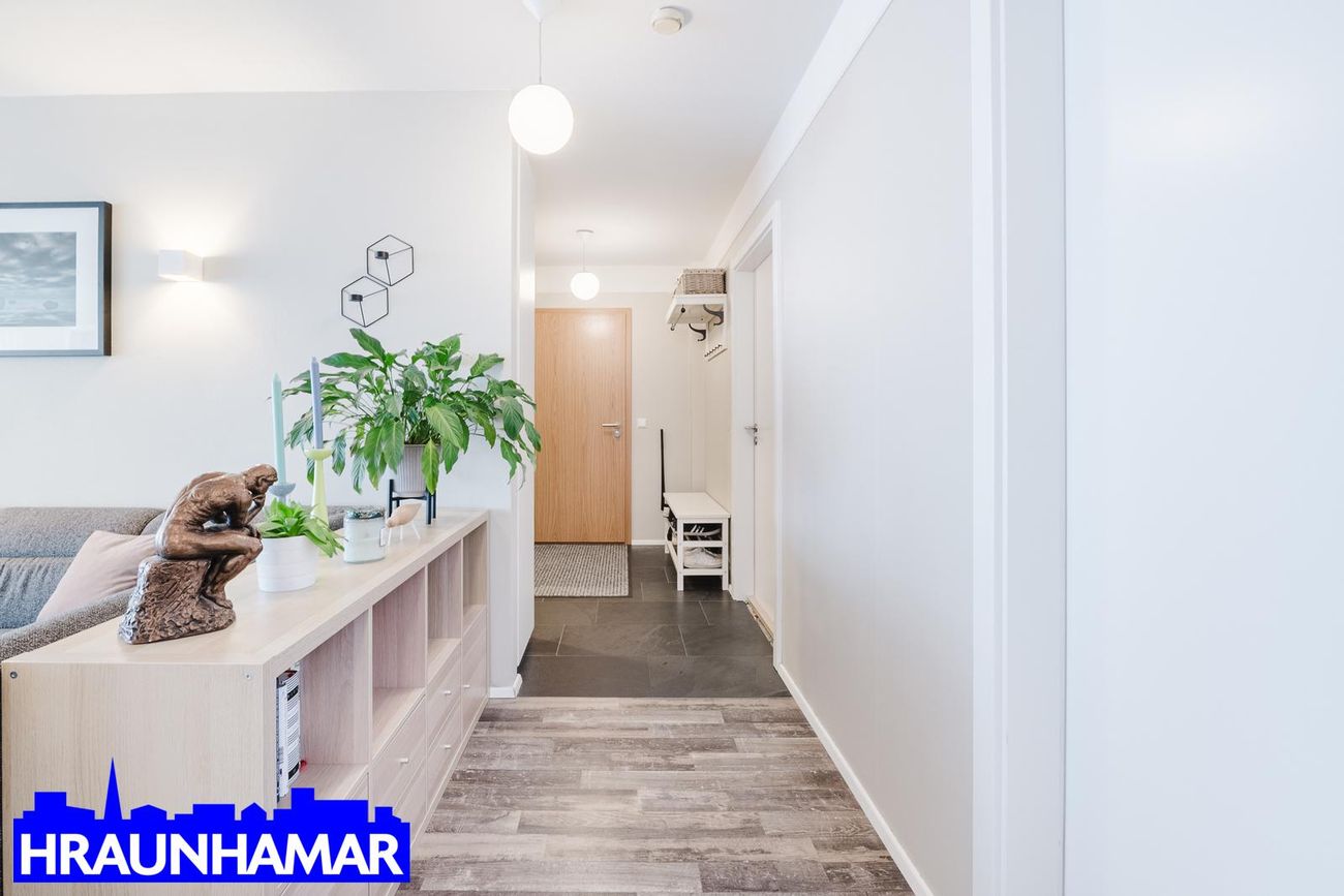 Íbúðin er samtals 105,1 fm, er með fjórum svefnherbergjum og með útgengi úr stofu út á rúmgóðum viðarpalli sem snýr til suðurs. Sameign er snyrtileg og þar er sameiginleg hjólageymsla. Eignin er falleg, lóðin er vel um gengin og snyrtileg.