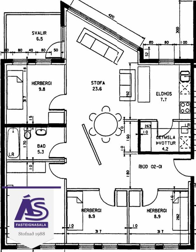 | 5 | 105,10 m² | 74.900.000 kr. 9. apríl 2026 | 40.800.000 kr. 12. júní 2017 |