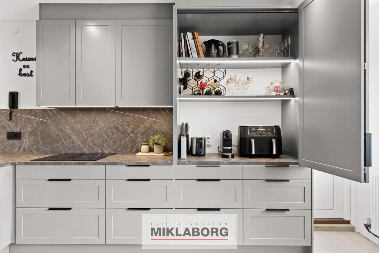 Búið er að breyta eldhúsi frá upprunalegum teikningum. Ný glæsileg innrétting frá HTH.