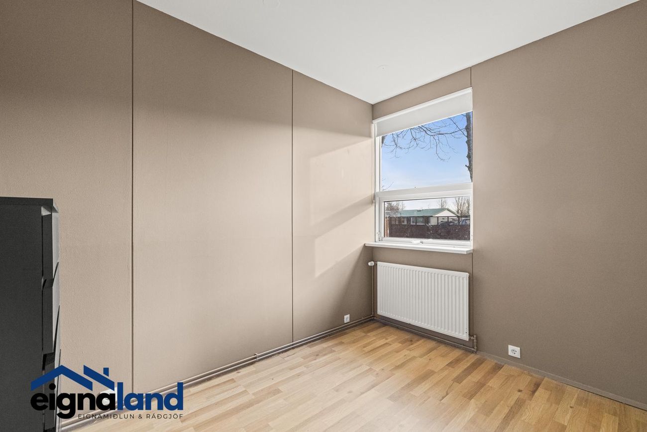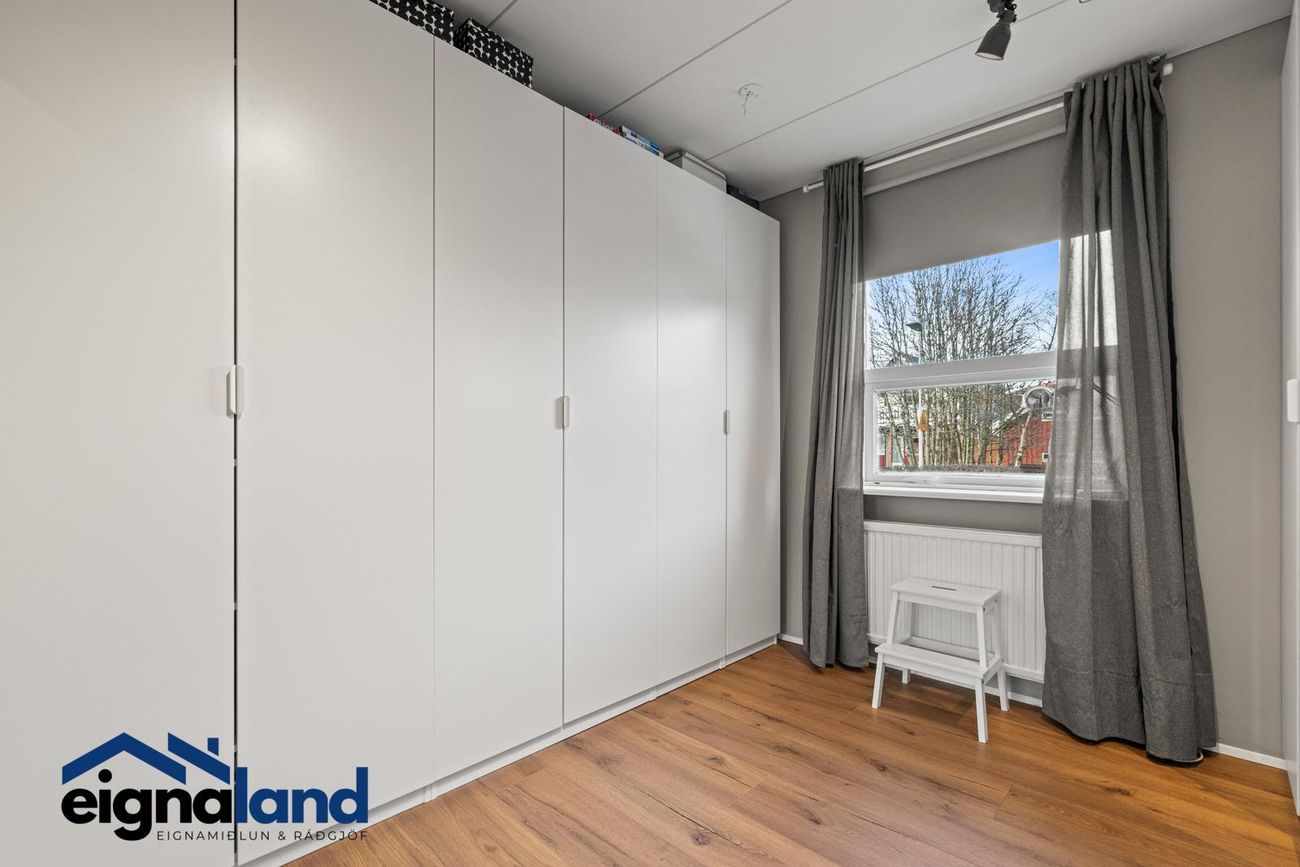 Svefnherbergi 2: Nýtt í dag sem fataherbergi og tómstundaherbergi. Parket á gólfi.