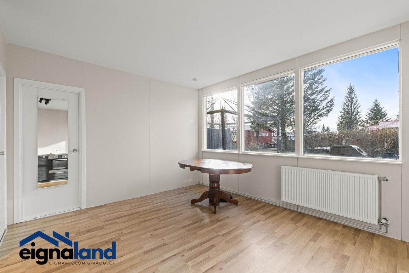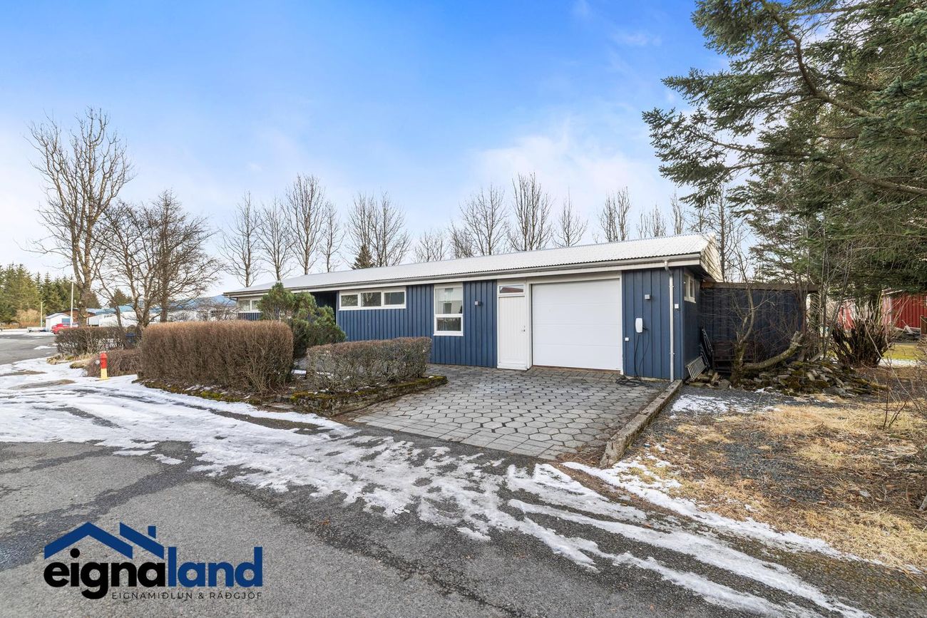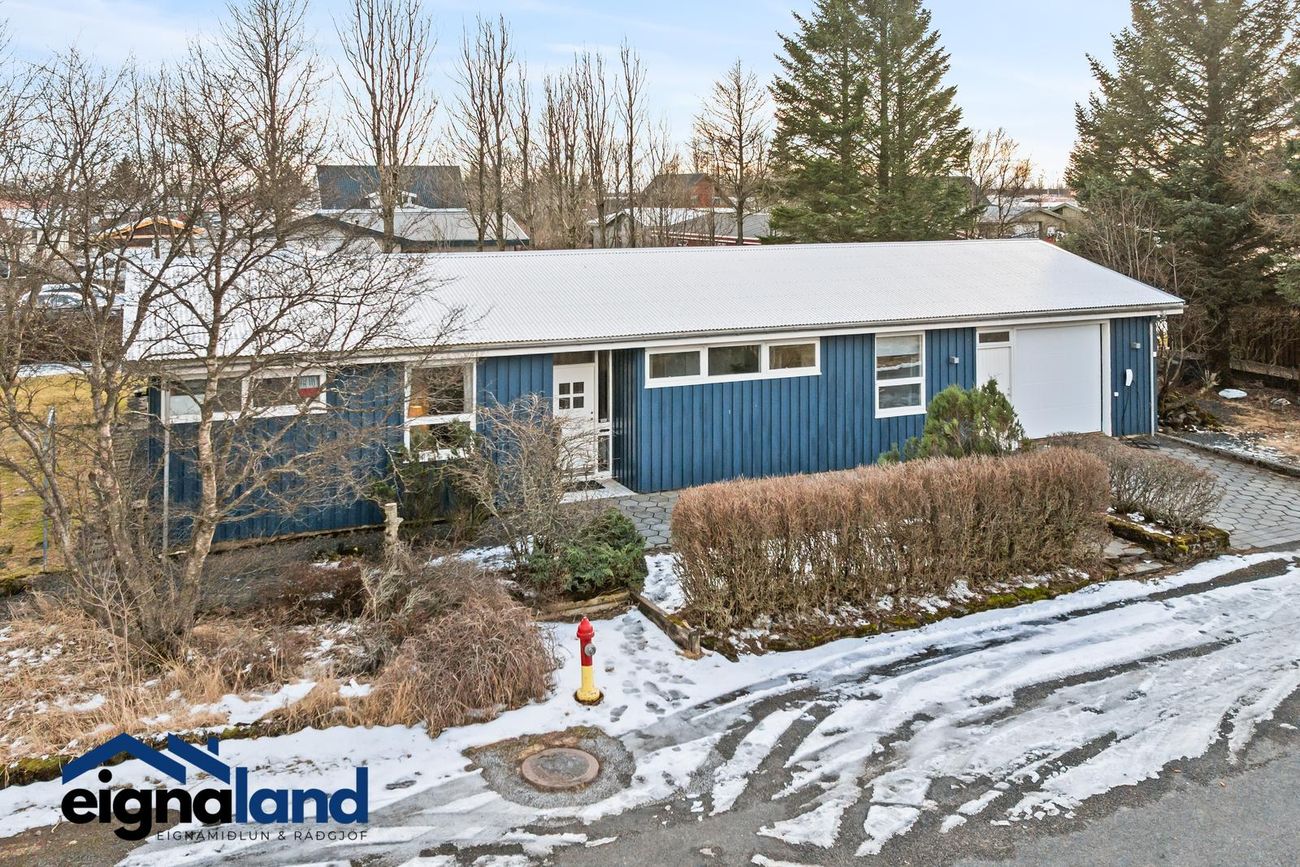 Um er að ræða 205 m2 einbýli sem skiptist í 125 m2 íbúð með fjórum svefnherbergjum, 40 m2 aukaíbúð með tveimur svefnherbergjum og innbyggðum 40 m2 bílskúr.