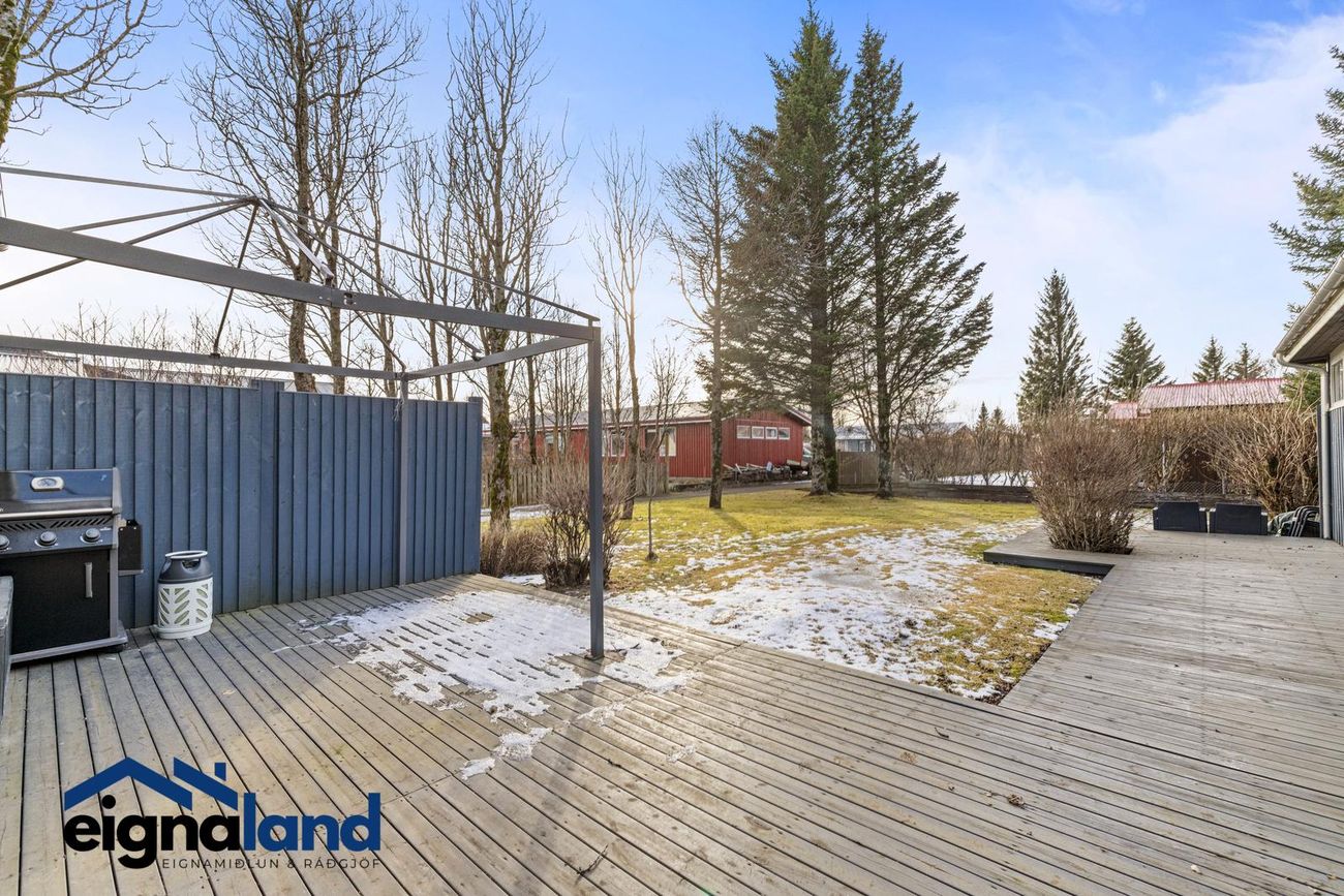 Garður: Gróinn garður með góðum sólpalli, sem snýr í suður. Árið 2020, var lóðin graslögð að nýju.