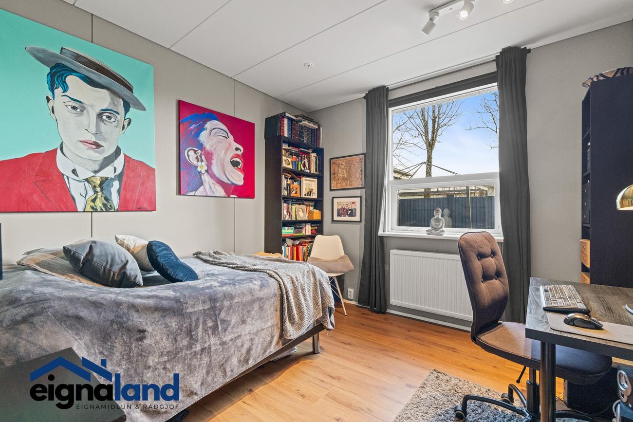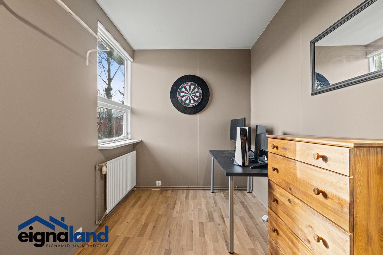Svefnherbergi 2: Nýtt í dag sem fataherbergi og tómstundaherbergi. Parket á gólfi.