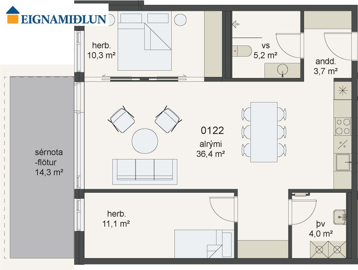 | 4 | 103,30 m² | 96.900.000 kr. 8. apríl 2026 | - - |