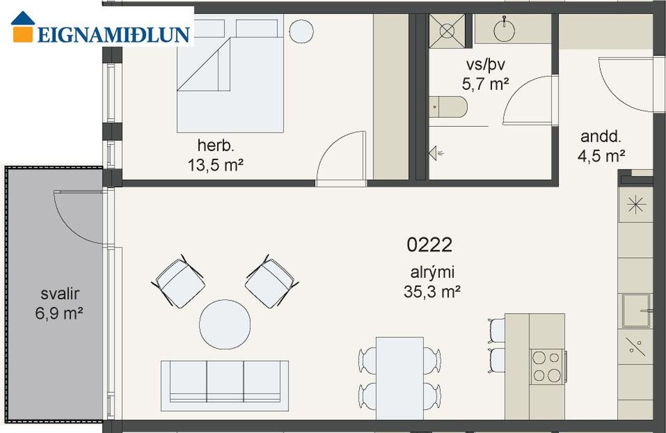 | 2 | 72,10 m² | 69.900.000 kr. 8. apríl 2026 | - - |