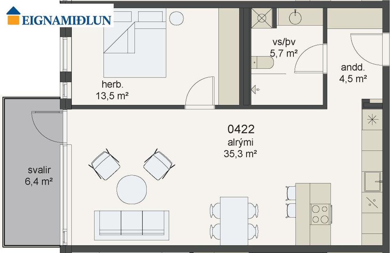 | 3 | 89,60 m² | 80.900.000 kr. 8. apríl 2026 | - - |