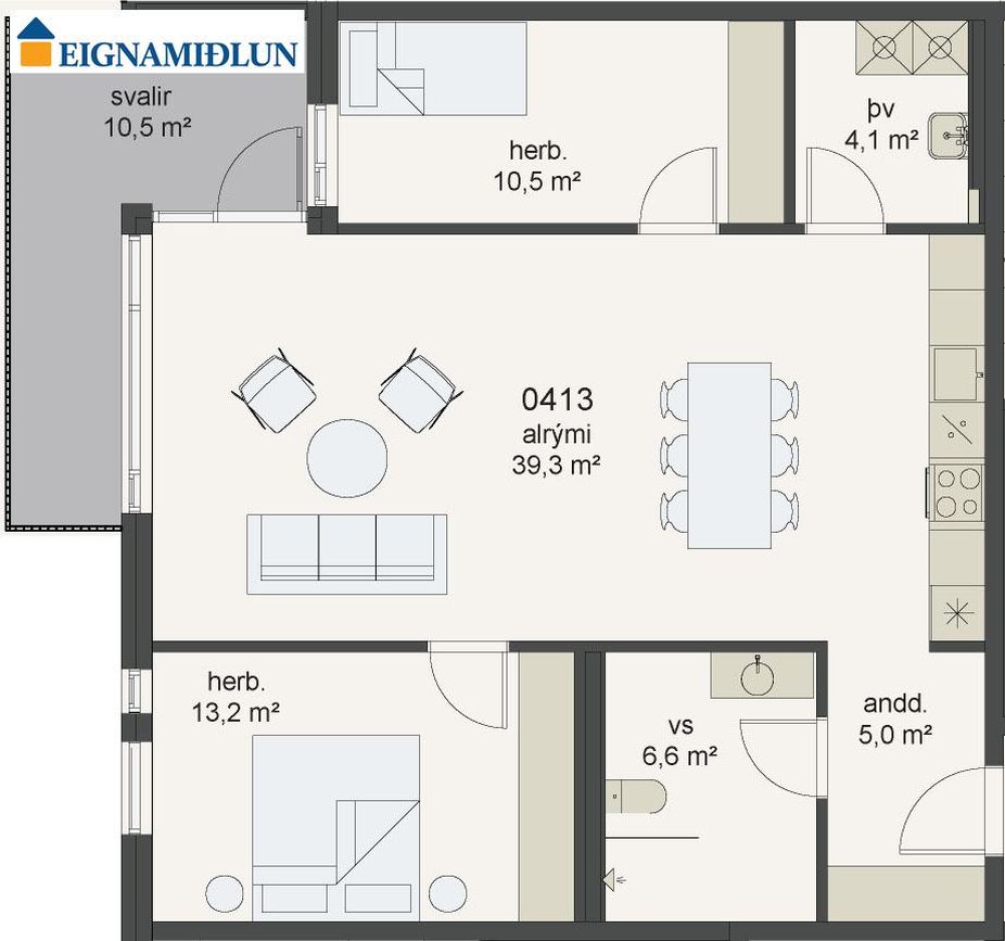 0413 ![]() | 3 | 96,10 m² | 101.900.000 kr. 8. apríl 2026 | - - |