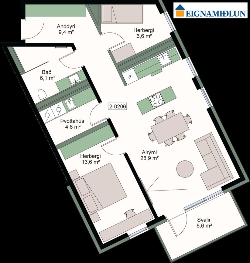 | 3 | 78,10 m² | 79.900.000 kr. 28. febrúar 2025 | - - |