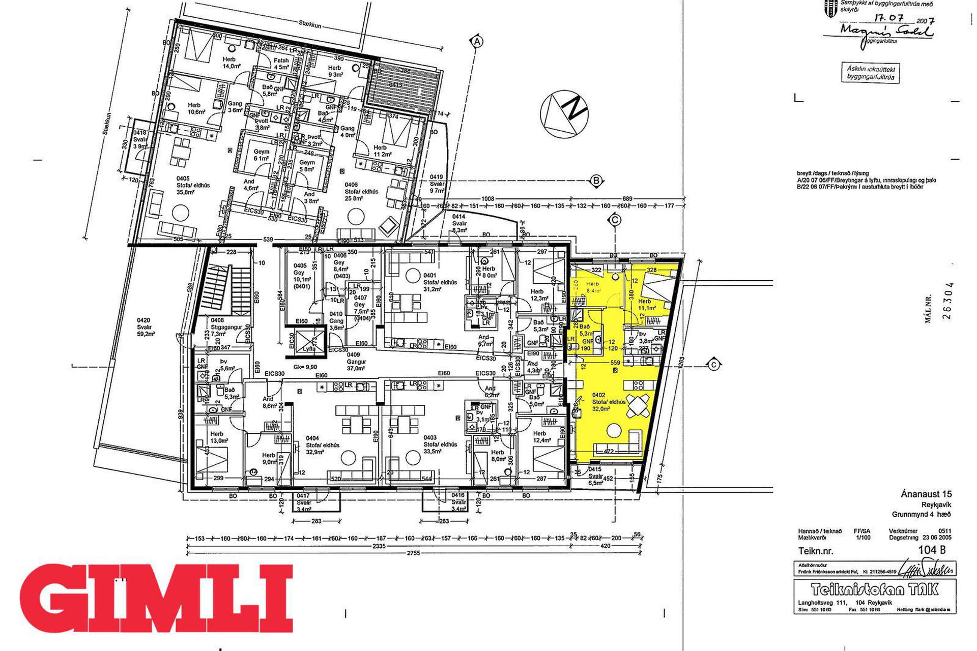 | 3 | 88,20 m² | 69.900.000 kr. 2. apríl 2026 | 20.900.000 kr. 7. október 2011 |