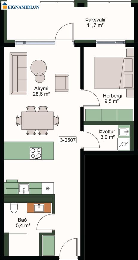 | 4 | 184,80 m² | 290.000.000 kr. 30. ágúst 2025 | 285.000.000 kr. 1. október 2025 |