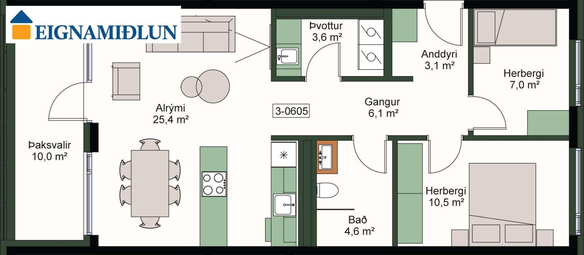 | 3 | 92,10 m² | 103.500.000 kr. 9. nóvember 2025 | 103.900.000 kr. 13. nóvember 2025 |