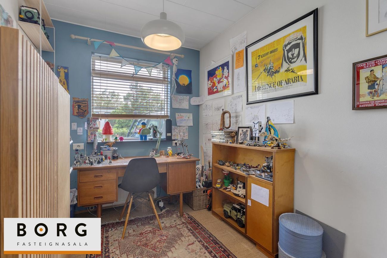 Svefnherbergin eru fjögur, þrjú barnaherbergi og hjónaherbergi.