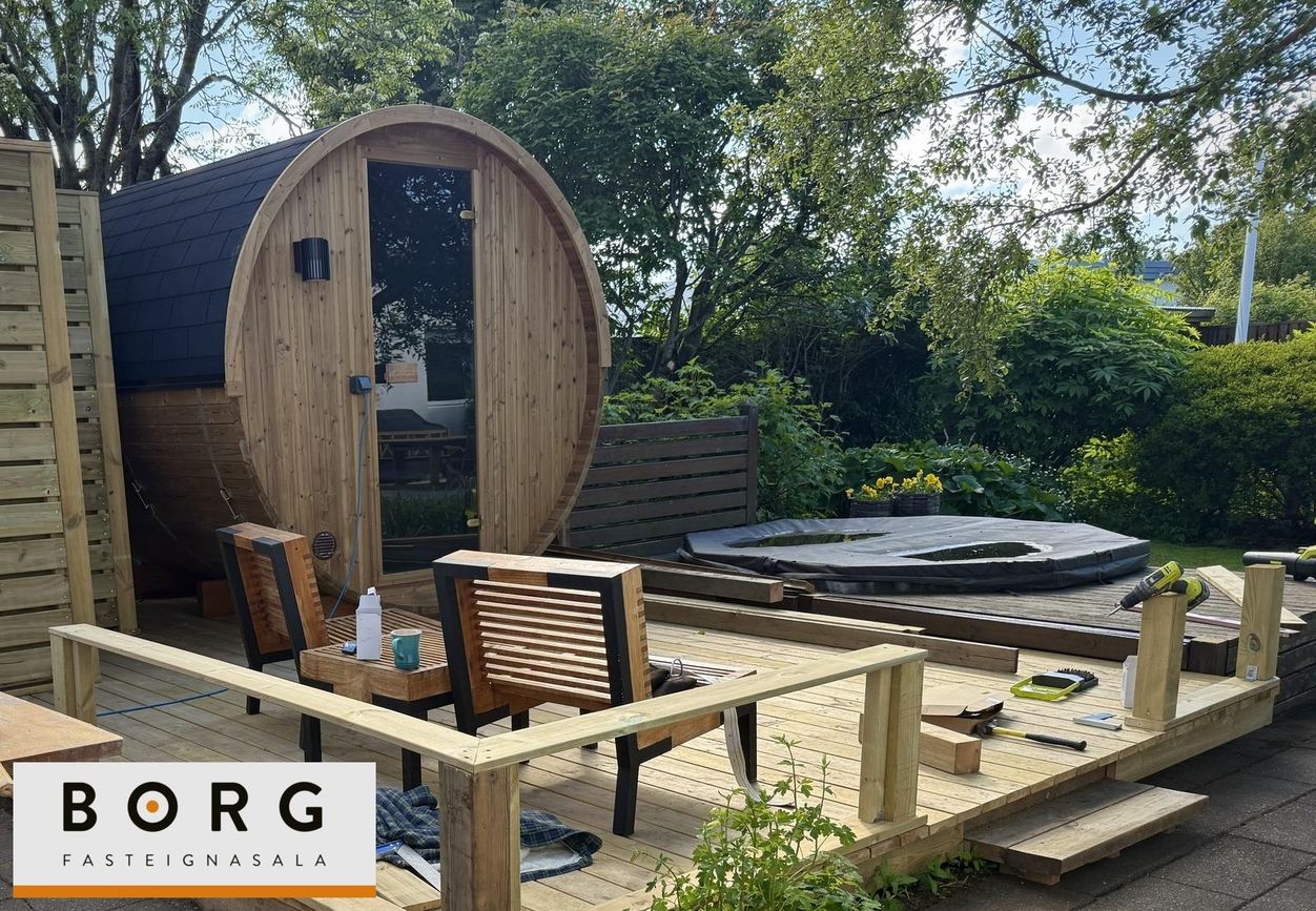 Lóð og umhverfi: Garðurinn er sælureitur með fallegum pöllum, miklum gróðri, bæði trjágróðri og plöntum. Heitur pottur og nýlega var bætt við útisturtu og saunu, það er því auðvelt að gusa sig hér. Garðurinn er afgirtur.