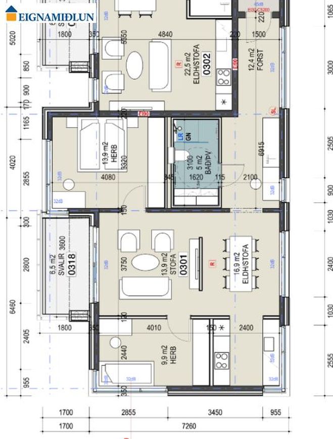 | 97,80 m² | 82.900.000 kr. 5. mars 2026 | 584.780.000 kr. 8. febrúar 2022 | |