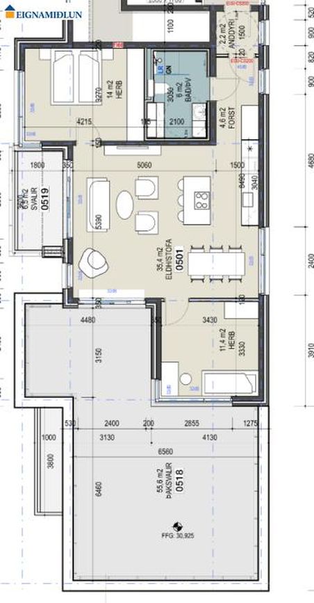 | 80,50 m² | 82.900.000 kr. 3. október 2025 | 76.900.000 kr. 5. nóvember 2025 |