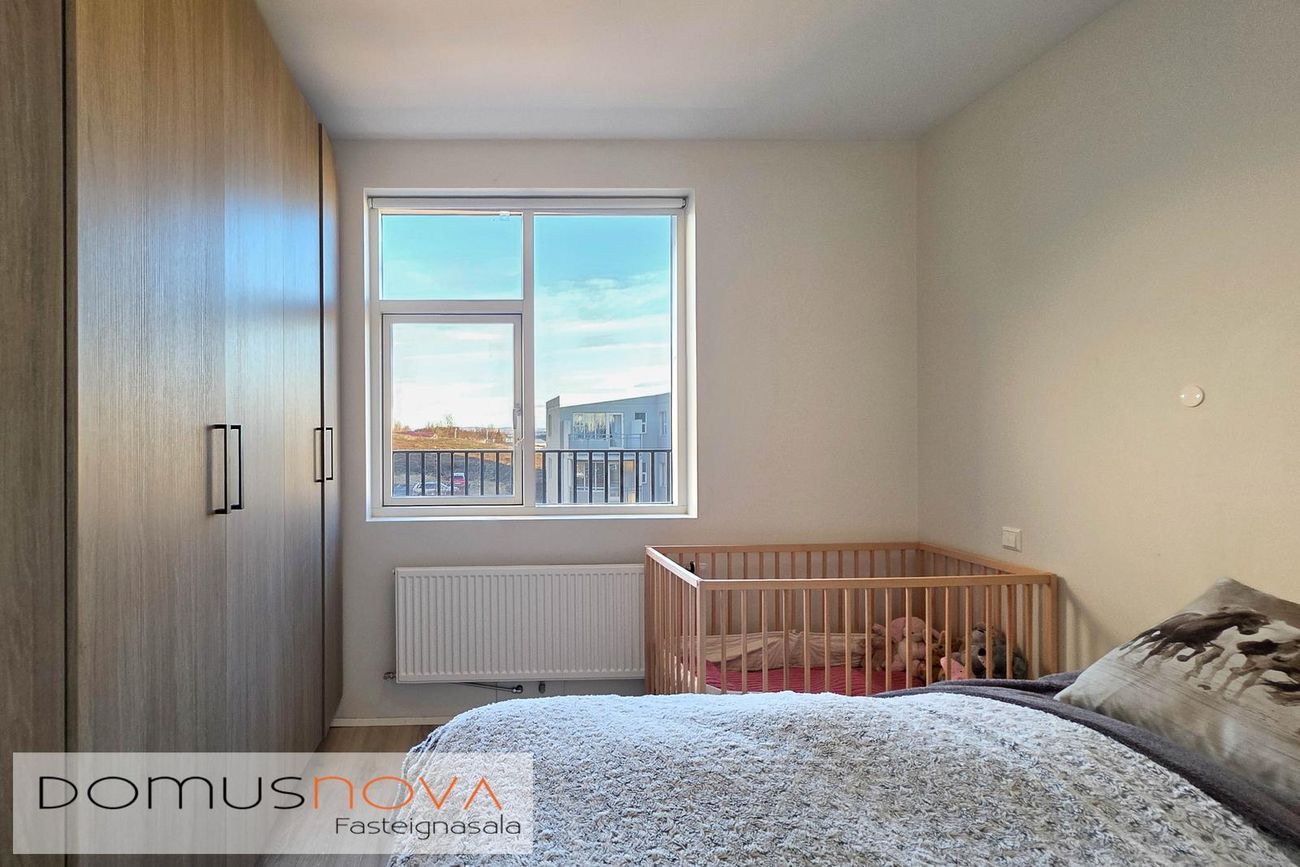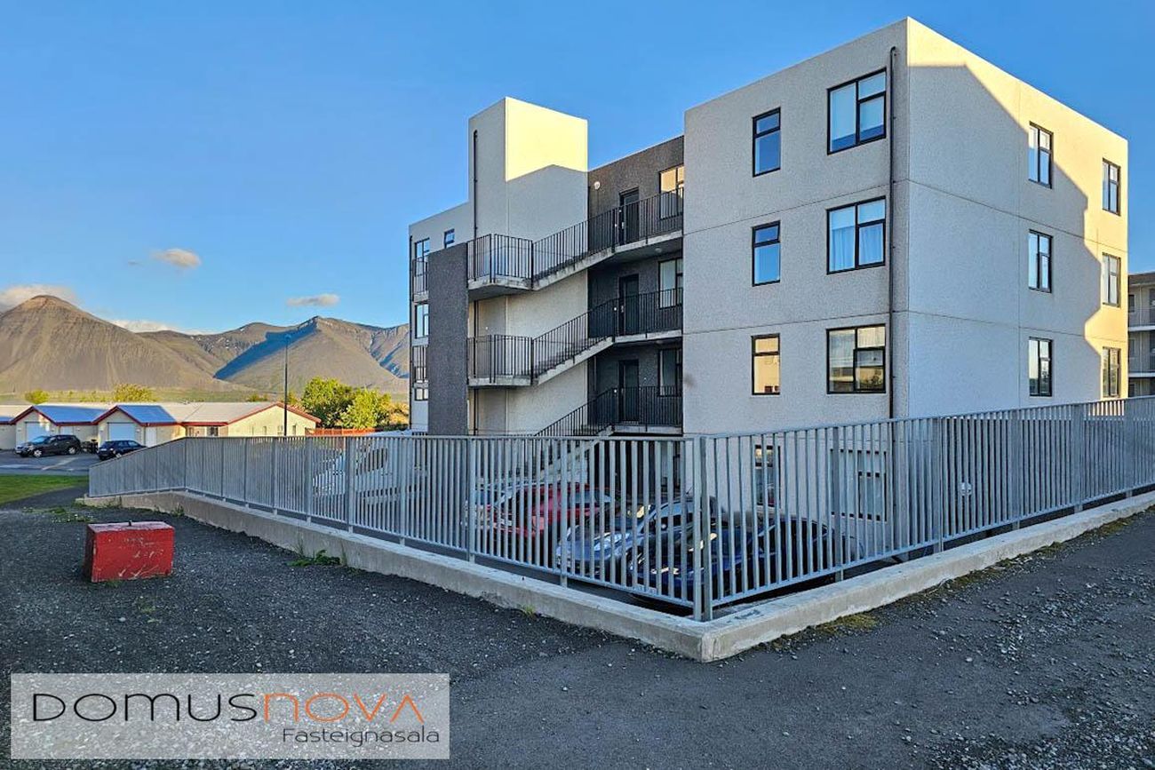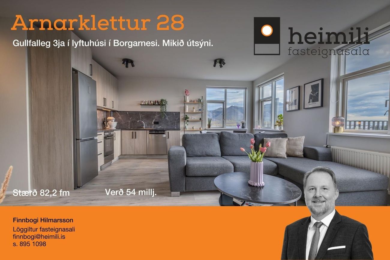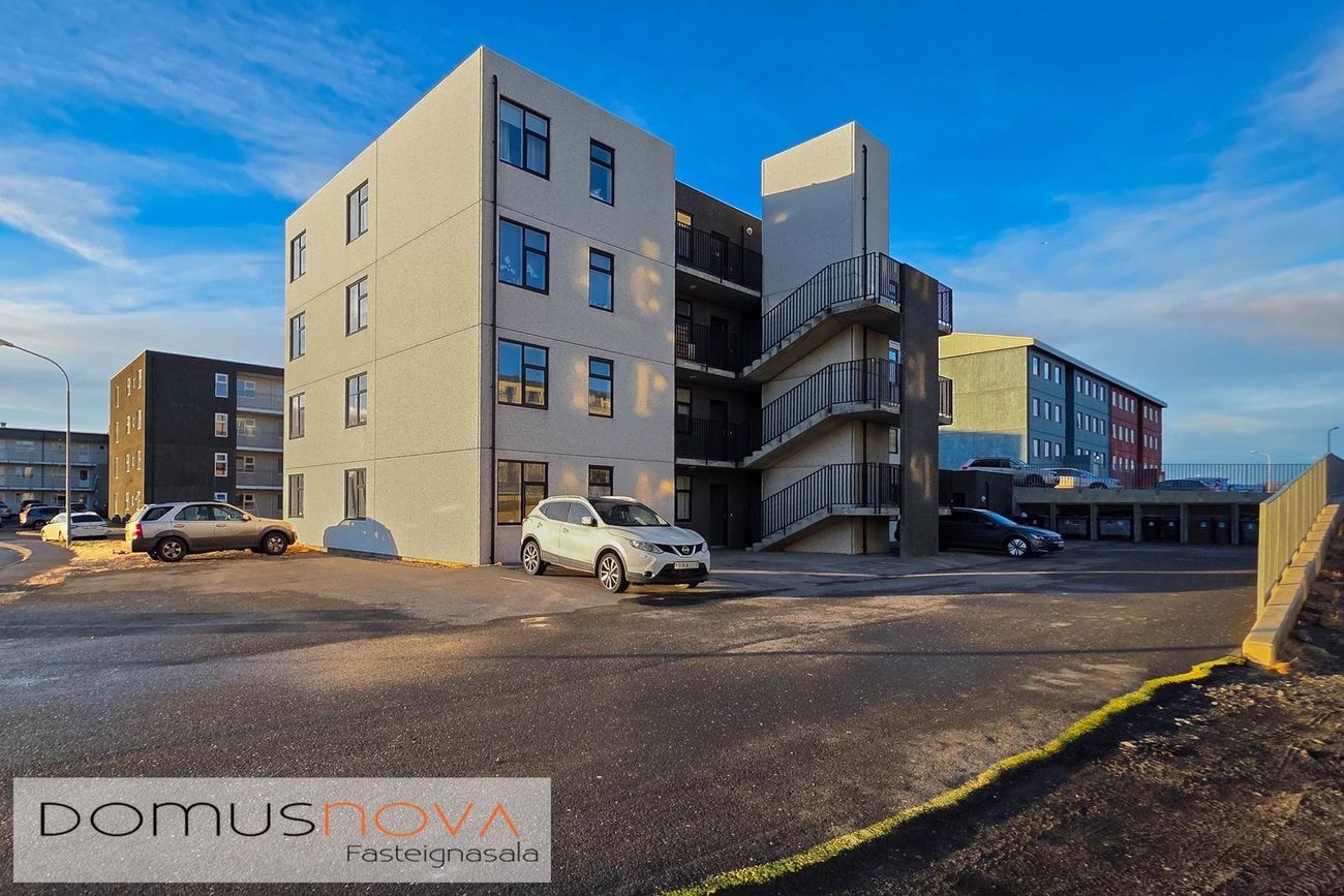 Sjöfn Hilmarsdóttir, lgf. // s. 691-4591 // sjofn@domusnova.isArnaklettur 28 er fjögurra hæða steinhús, byggt árið 2016 með alls sextán íbúðum, fjórar íbúðir á hverri hæð. Húsið er klætt með hvítri marmarasteiningu og er dökk marmarasteining á svalagangi að framan. Gluggar eru úr svörtu áli og timbri, tvöfalt gler í öllum gluggum. Lyftuhús er staðsett fyrir miðju að framanverðu húsinu og er upphitað. Póstkassar íbúða eru við lyftuhús á 1.hæð. Tvær bílahleðslustöðvar hafa verið settar við húsið og eru einungis ætlaðar til notkunar af íbúum. Lóðin er 1553,0 fm. og er sameiginleg. Sorpaðstaða er við enda bílaplans.