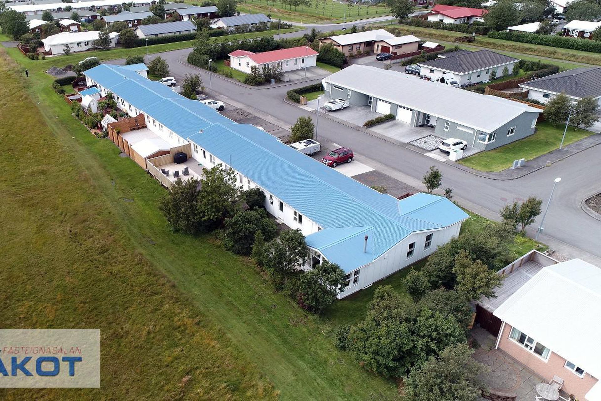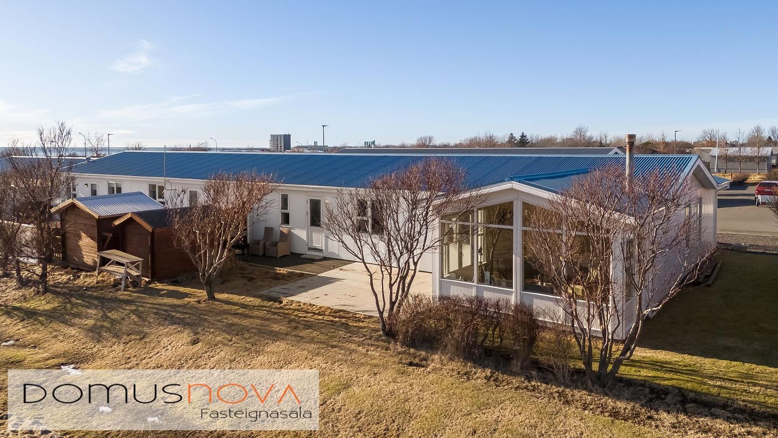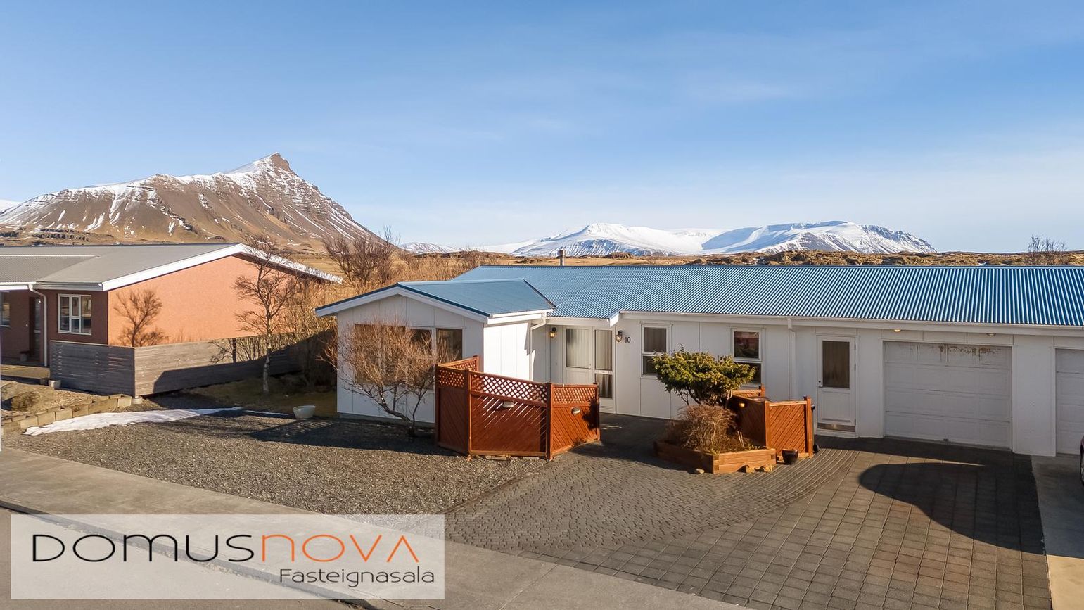 Endaraðhús á einni hæð með forstofu, hol, stofu, eldhúsi, sólstofu, sjónvarpsholi, 2 svefnherbergjum, baðherbergi, tengigangi, þvottahúsi og bílgeymslu.