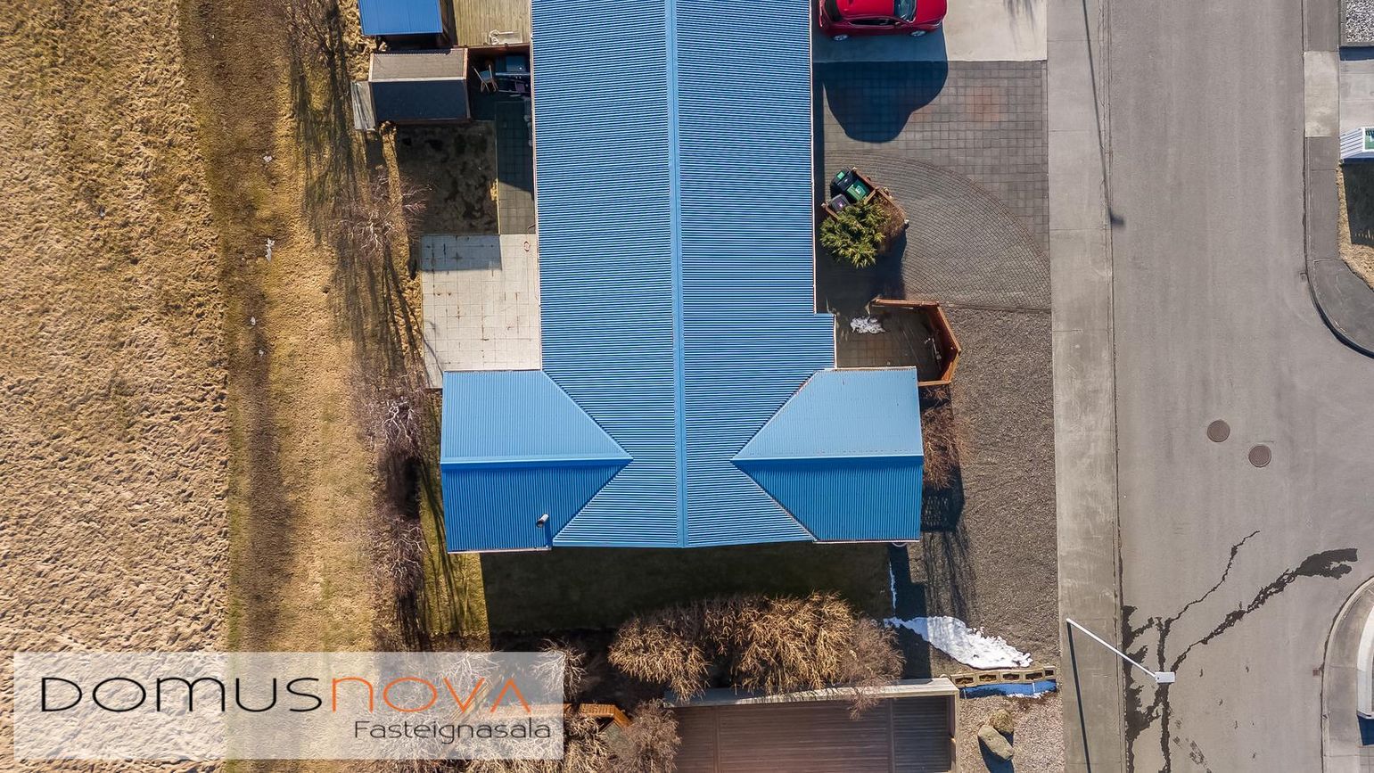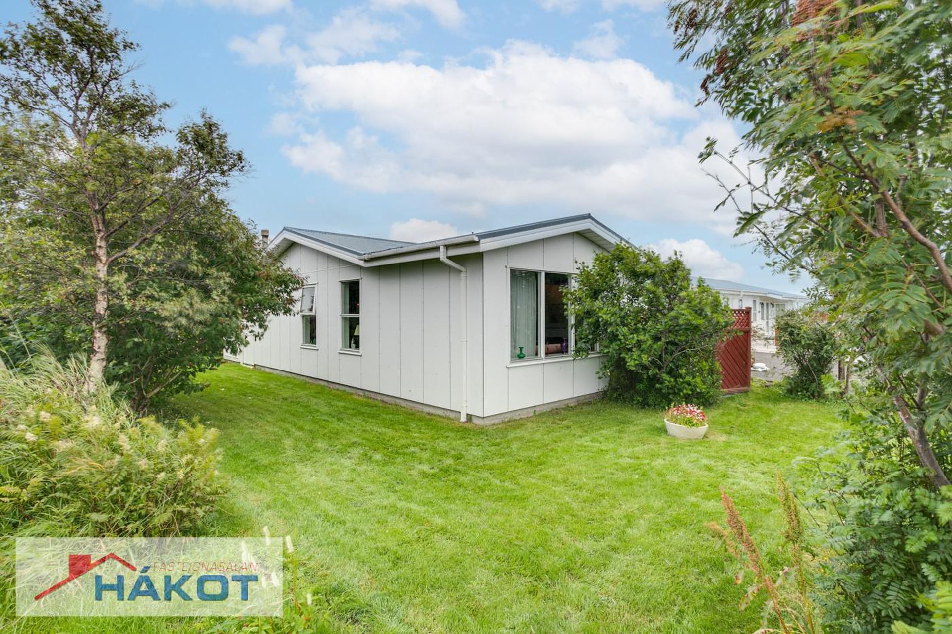 Geymslaskúr á baklóð og geymsluloft í bílgeymslu.