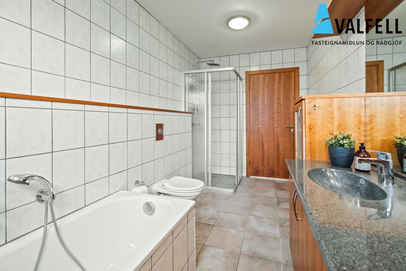 Innbyggður 31,4 fm bílskúr með þriggja fasa rafmagni, hleðslustöð fyrir rafbíl og gólfhita.