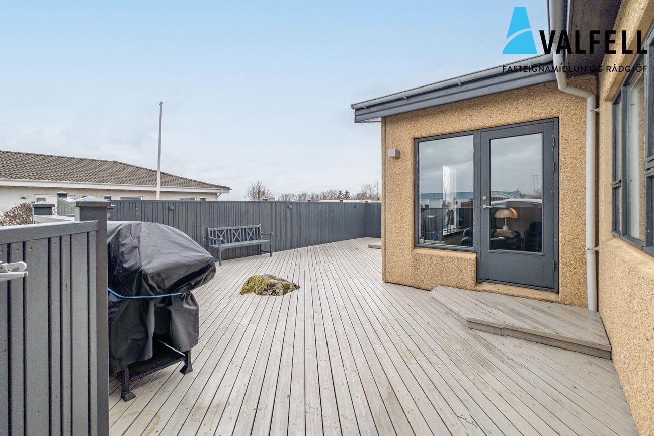 200,4 fm einbýlishús með innbyggðum 31,4 fm bílskúr. Fjögur svefnherbergi, opið loftrými með eikarklæðningu, sólpallar og heitur pottur.