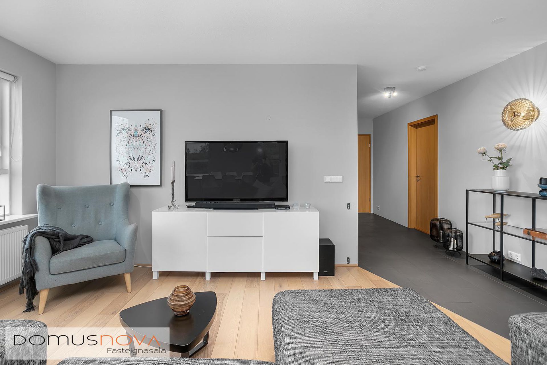 - Harðparket frá Quick-Step lagt samfelldan flöt um alla íbúðina (utan baðherbergis)