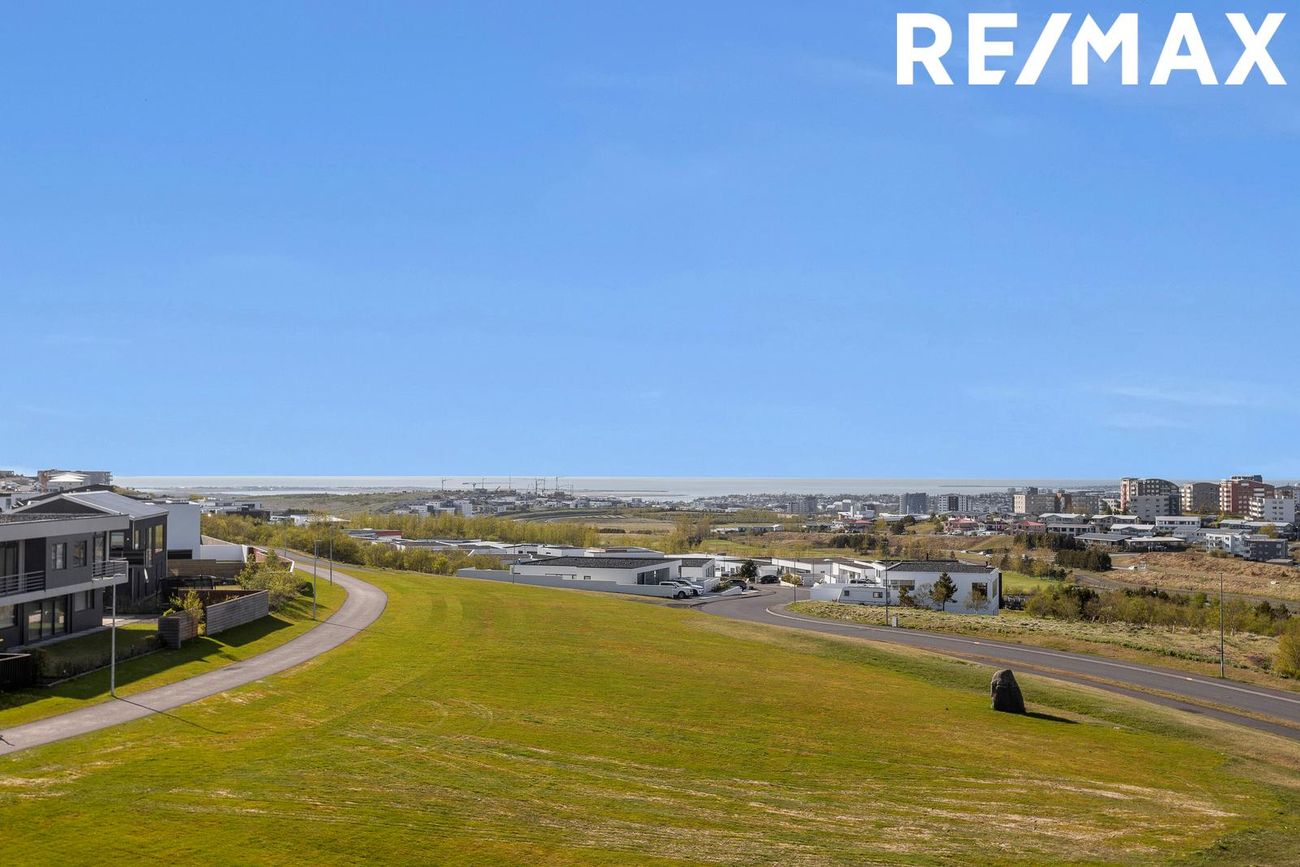 Eignin er óvenju rúmgóð, vönduð, björt og opin með stórum svefnherbergjum og stórkostlegu útsýni.