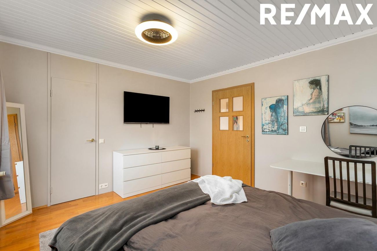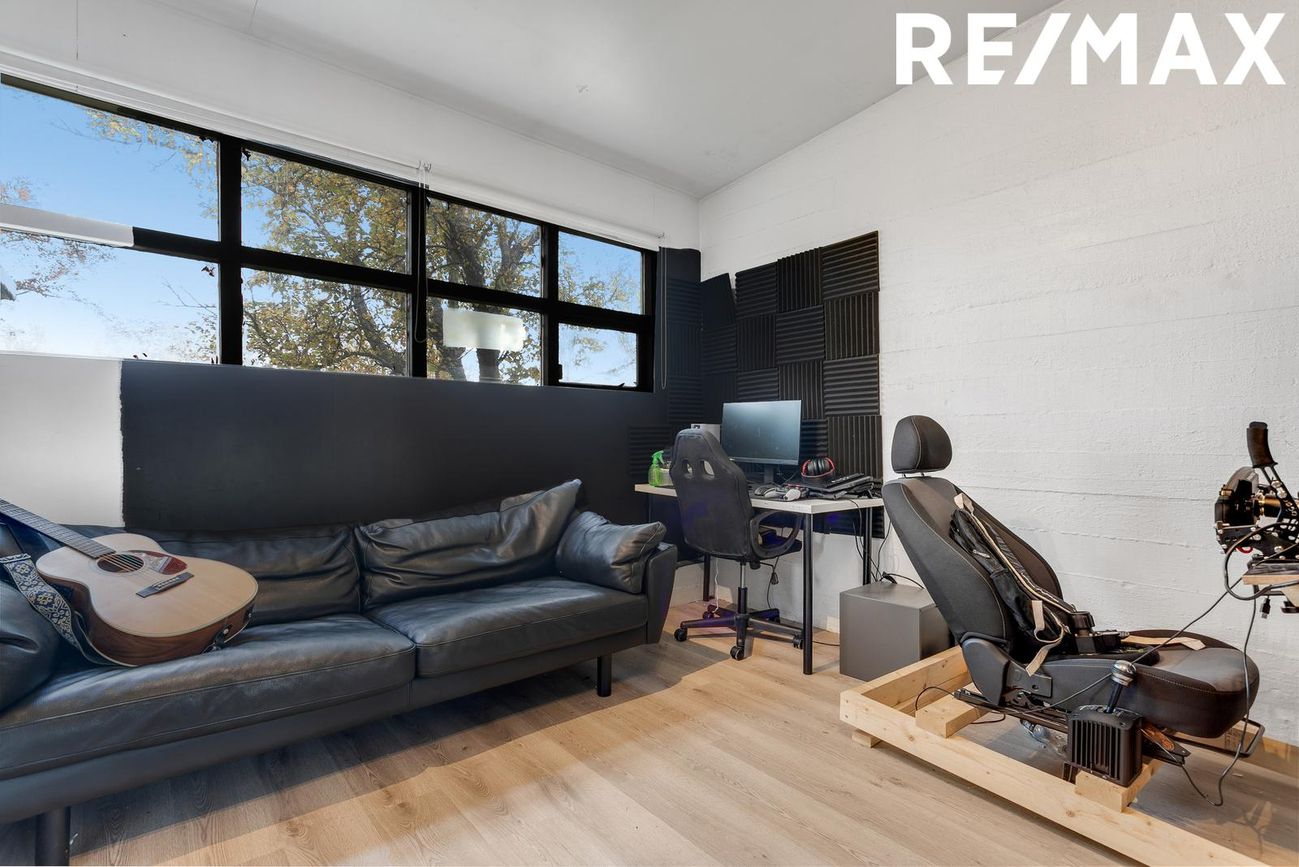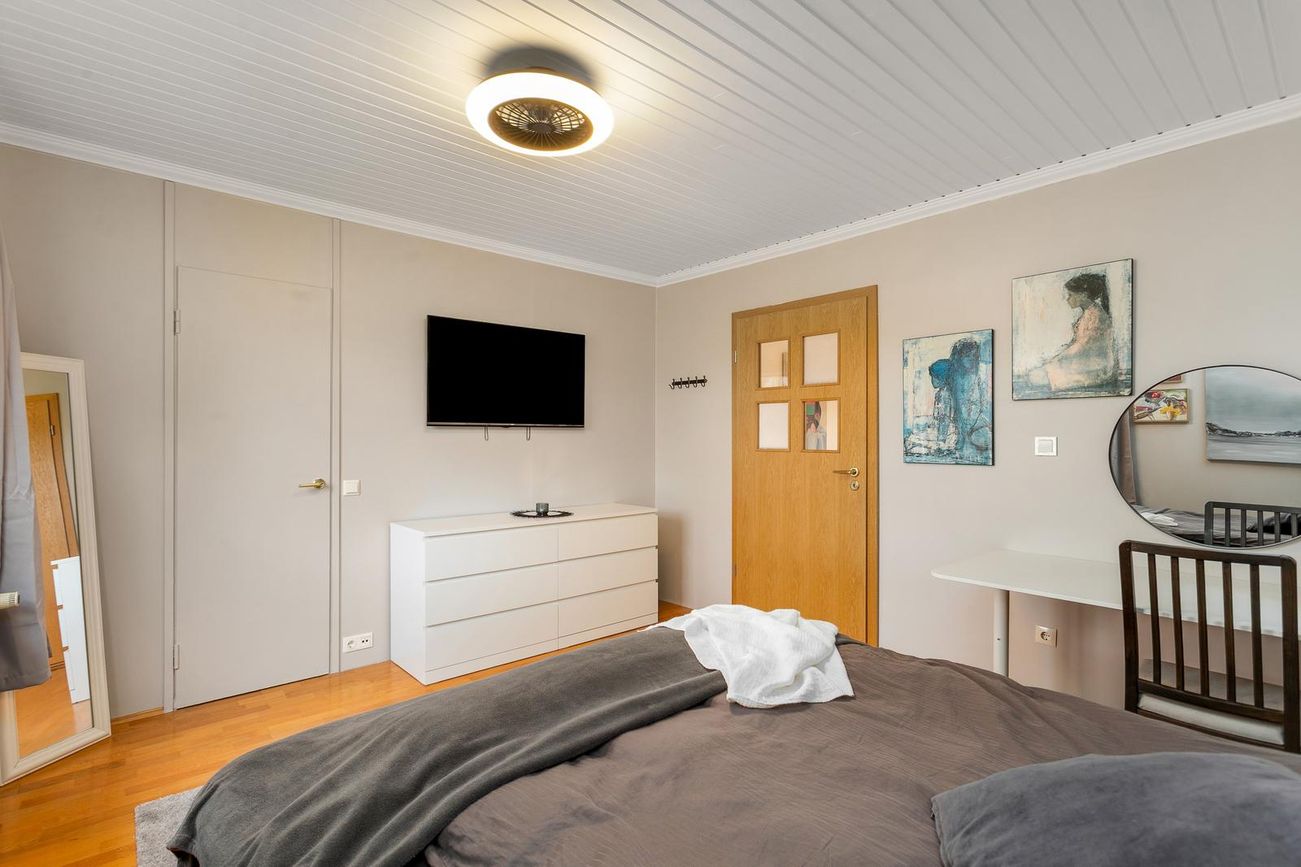 opið rými (léttir milliveggir) með parketlögðu svefnherbergi fyrir innan. Bjart og rúmgott svefnherbergi með fallegu útsýni til norðurs.