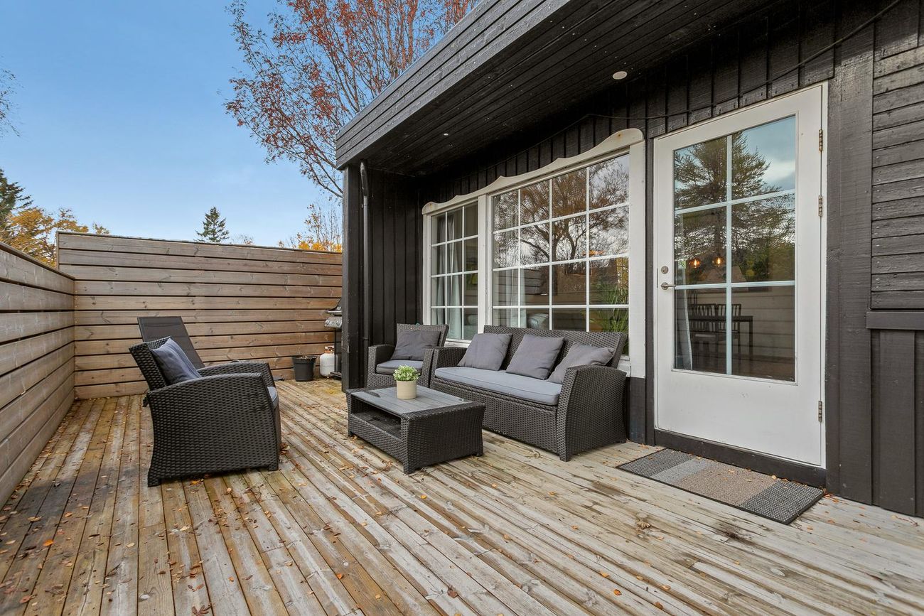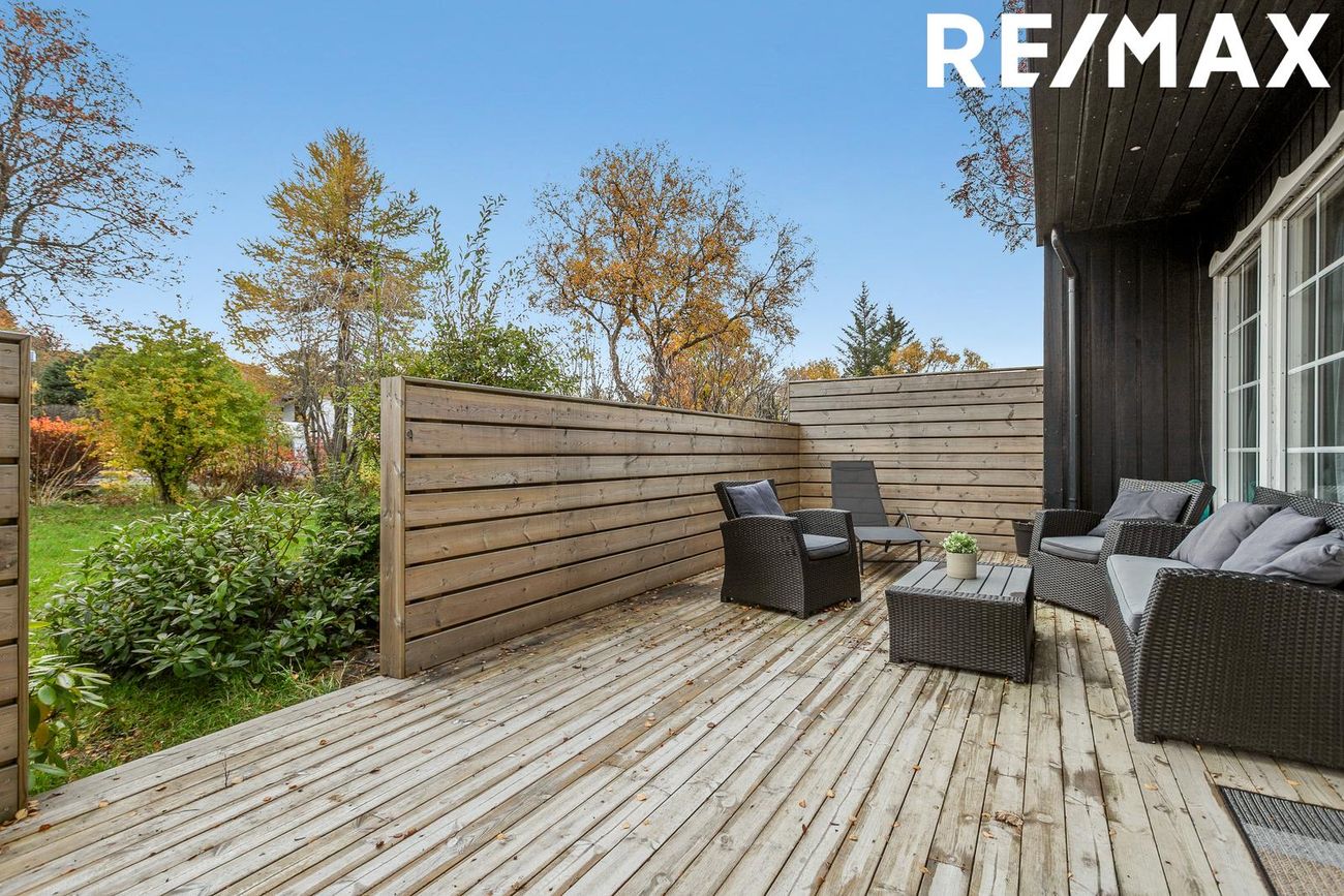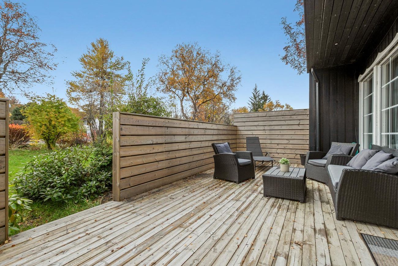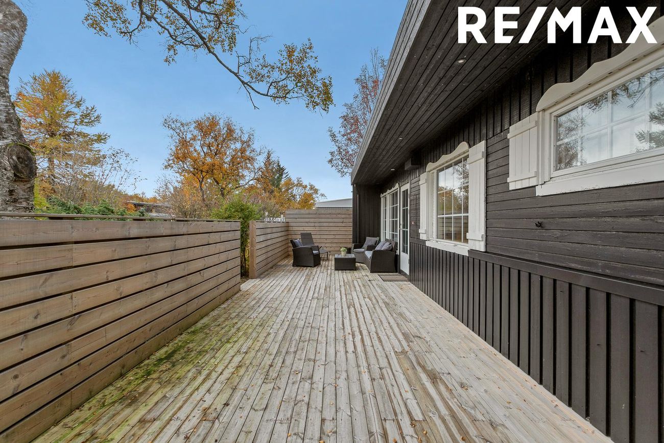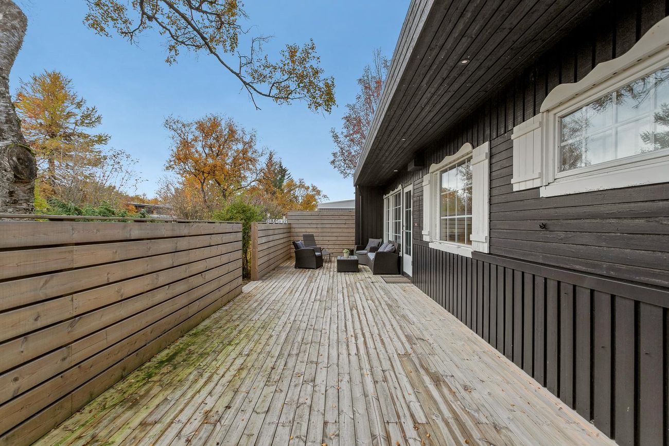 50 fm. viðarverönd til suðurs. Veröndin er einstaklega skjólsæl og sólar nýtur vel yfir daginn og fram á kvöld.